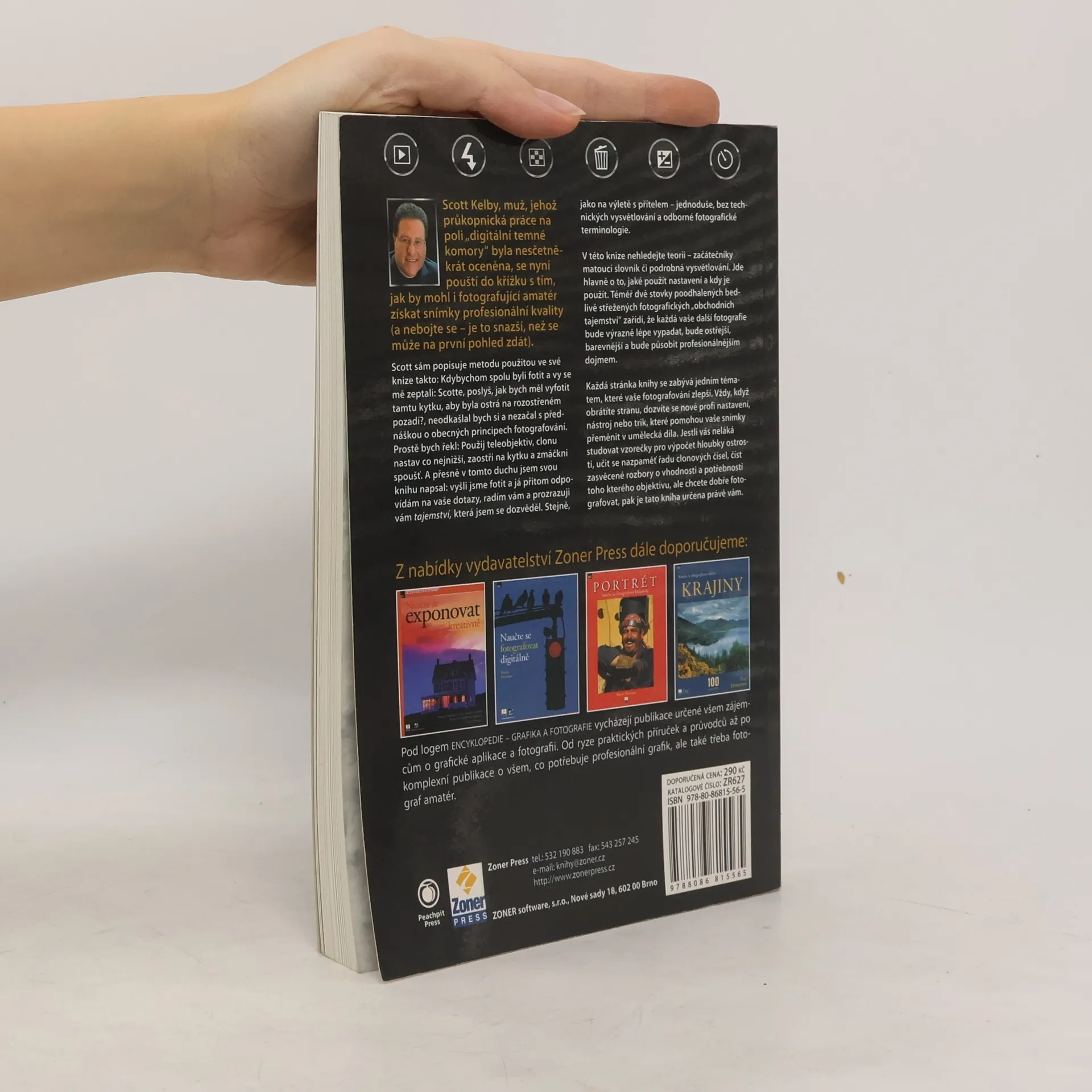 Scott Kelby je jedním z nejznámějších autorů píšících o Photoshopu a také o digitální fotografii. Je známý svým specifickým, pro někoho obtížně stravitelným, humorem. Staví před čtenáře fakta, informace i postupy bez ohledu na autority a jinými respektovaná klišé. V jeho podání ztrácí mnohé "digitální tajnosti" své tajemno a zůstává stravitelné jádro. Na rozdíl od jiných – skvělých – autorů se Kelby příliš netrápí vysvětlováním, řídí se spíše heslem: „Chceš vytvořit tohle? Udělej to tak a tak.“ Podobné je to i v této knize. Sám Kelby v ní říká: „...kdybychom spolu byli fotit a vy se mě zeptali: Scotte, jak bych měl vyfotit tamtu kytku, aby byla ostrá na rozostřeném pozadí? – neodkašlal bych si a nezačal s přednáškou o obecných principech fotografování. Prostě bych řekl: Použij teleobjektiv, clonu nastav co nejnižší, zaostři na kytku a zmáčkni spoušť“. Jedná se většinou o jednoduché rady, v rozsahu, který se vejde vždy na jednu stránku. Vždy jde ale o rady veskrze praktické, řešící s předstihem řadu problémů, do kterých se může začínající fotograf dostat. Scott Kelby se nesnaží hledat složité pokyny, jeho rady jsou přímé: chcete ostré fotografie krajiny – nespekulujte a pořiďte si stativ. Chcete se vyhnout problémům u portrétu – pracujte s co nejjednodušším pozadím. Většina věcí je v jeho podání jednoduchá a pokud budete po zvládnutí základů chtít pokračovat dále – na trhu najdete dost další literatury, která vás zavede dál a hlouběji do tajů fotografování. S touto knihou Scotta Kelbyho ale možná překonáte ty první překážky, které stojí mezi vámi, novým majitelem nového fotoaparátu a fotografováním.