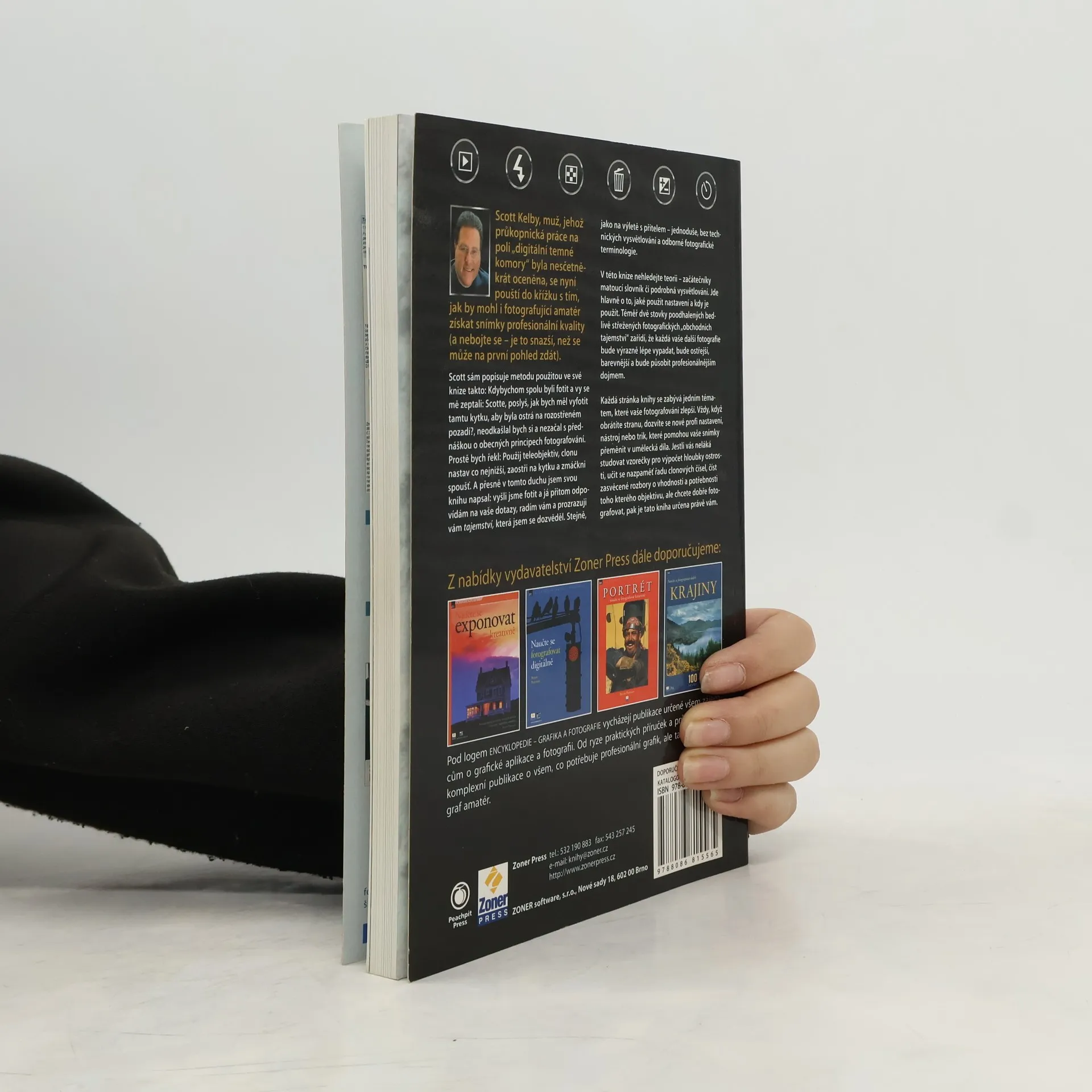 Scott Kelby je renomovaný autor v oblasti Photoshopu a digitální fotografie, známý svým specifickým humorem. Představuje fakta a postupy bez ohledu na autority a zavedená klišé, čímž odhaluje "digitální tajnosti" a zjednodušuje jejich pochopení. Na rozdíl od jiných autorů se Kelby nezaměřuje na složitá vysvětlení, ale raději dává praktické rady: „Chceš vytvořit tohle? Udělej to tak a tak.“ V této knize se zaměřuje na jednoduché, praktické tipy, které se vejdou na jednu stránku. Například, pokud se zeptáte, jak vyfotit kytku s rozostřeným pozadím, doporučí použít teleobjektiv a nízkou clonu. Jeho rady jsou přímočaré a řeší běžné problémy, s nimiž se začínající fotografové mohou setkat. Chcete ostré fotografie krajiny? Pořiďte si stativ. Chcete se vyhnout problémům u portrétu? Pracujte s jednoduchým pozadím. Všechny rady jsou přístupné a pokud po zvládnutí základů toužíte po dalším vzdělávání, na trhu je dostatek literatury pro pokročilejší úroveň. Tato kniha vám pomůže překonat první překážky na cestě k fotografování s novým fotoaparátem.