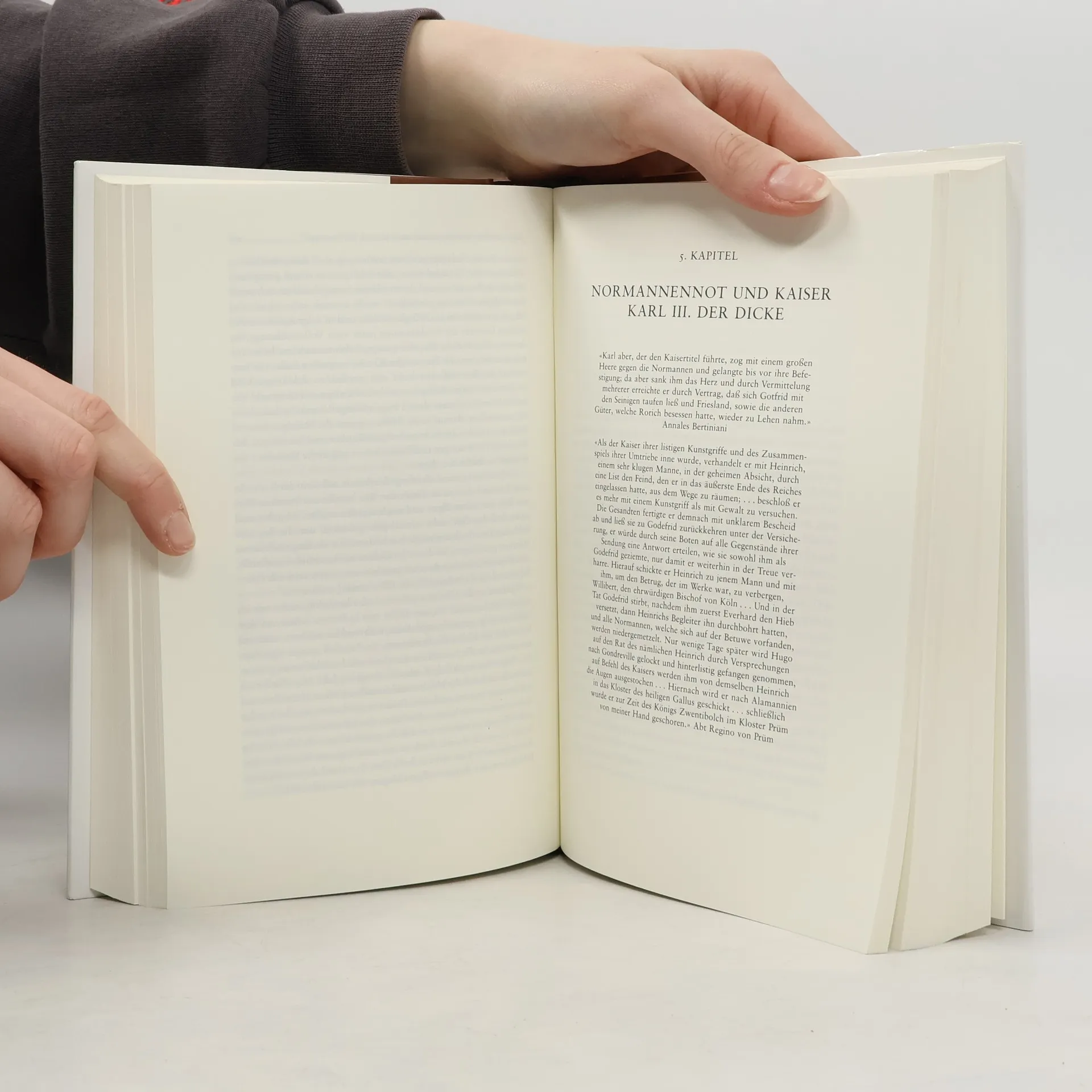 Der Band beginnt im Jahre 814 mit dem Tod von Karl, genannt «der Große». Schon unter seinem Sohn Ludwig, genannt «der Fromme», entbrennt im karolingischen Familienkreis der Machtkampf, der zum Zerfall des Imperiums führt. Nach etwa 100 Jahren stirbt der erst 18-jährige Ludwig, genannt «das Kind», und mit ihm erlischt die ostfränkische Karolingerdynastie. Die kulturell glanzvolle, aber politisch blutige Ära der Ottonen dauert nur etwas über sechzig Jahre und endet 1002 mit Kaiser Otto III. Im 9. und 10. Jahrhundert kommt es zu einer engen Verflechtung von kirchlicher und weltlicher Macht. Der Kaiser schafft ein Gegengewicht zu den neidischen Herzögen, indem er Bischöfe und Reichsäbte mit Ländereien beschenkt und ihnen königliche Hoheitsrechte überträgt. Geistliche Fürstentümer entstehen, und die geweihten Herrschaften werden zur Hof- und Heerfahrt verpflichtet. Der Kriegsdienst des hohen Klerus blüht wie nie zuvor, und die Reichskirche ist vollständig militarisiert. Auch Päpste ziehen in den Krieg; 849 verspricht Leo IV. den katholischen Kämpfern für den Todesfall das Himmelreich. Papst Segius III. lässt sogar zwei Vorgänger umbringen, und der erste Papstmord der Geschichte geschieht durch einen Verwandten Johanns VIII., der den Papst vergiftet und mit einem Hammer erschlägt.