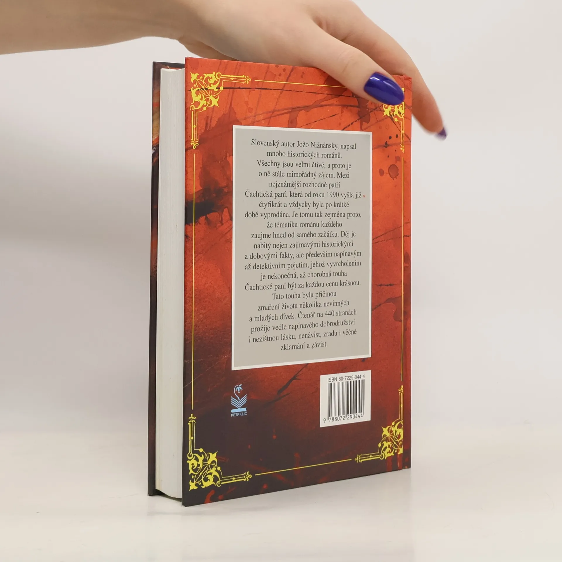 Slovenský autor Jožo Nižnánský napsal mnoho historických románů. Všechny jsou velmi čtivé, a proto je o ně stále mimořádný zájem. Mezi nejznámější rozhodně patří Čachtická paní, která od roku 1990 vyšla již čtyřikrát a vždy byla po krátké době vyprodána. Je tomu tak zejména proto, že téma románu každého zaujme hned od samého začátku. Děj je nabitý nejen zajímavými historickými a dobovými fakty, ale je především napínavým až detektivním čtením. Vyvrcholením děje je nekonečná až chorobná touha Čachtické paní být za každou cenu krásnou. Tato touha byla příčinou zmaření života několika nevinných a mladých dívek.... celý text