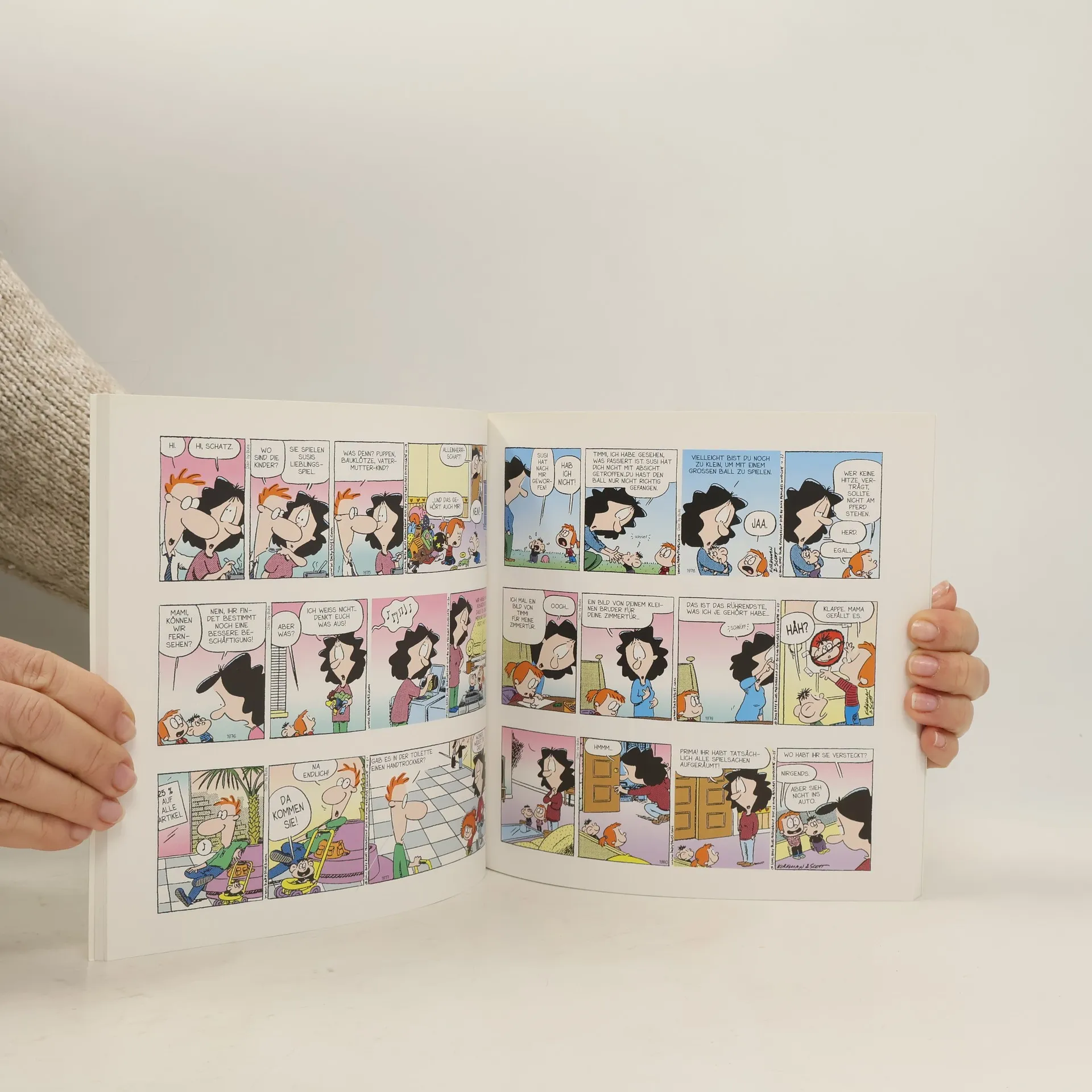 Es wurde auch allerhöchste Zeit, dass dem eigentlichen Familienoberhaupt in allen Kulturen ein eigener Titel in der grandiosen Erfolgsserie um die lieben Kleinen und deren Dompteure eingeräumt wird: der Mutter! Im schon siebten Band ist der kleine Timmi bereits alt genug, um im Team mit seiner großen Schwester die Umwelt in jeder Hinsicht aus dem Lot zu bringen. Seien es Monster unter dem Bett, der Osterhase im Garten oder die Nachbarskinder - nichts ist sicher vor den Untersuchungen und Experimenten der beiden Racker, die wie alle Kinder ihre Eltern in den Wahnsinn treiben würden - wenn diese dort nicht schon längst angekommen wären. Es dürfen sich wieder Tausende junger Eltern, Großeltern, Nenntanten und Patenonkel freuen - der nächste, farbige Band der Serie wird wieder die Herzen aller Menschen mit Kinderkontakt höher schlagen lassen!