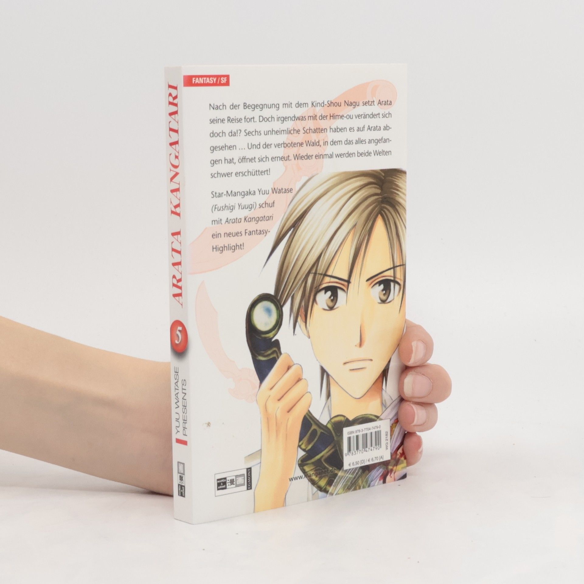 Nach der Begegnung mit dem Kind-Shou Nagu setzt Arata seine Reise fort. Doch irgendwas mit der Hime-ou verändert sich doch da!? Sechs unheimliche Schatten haben es auf Arata abgesehen … Und der verbotene Wald, in dem das alles angefangen hat, öffnet sich erneut. Wieder einmal werden beide Welten schwer erschüttert! Star-Mangaka Yuu Watase (Fushigi Yuugi) schuf mit Arata Kangatari ein neues Fantasy-Highlight!