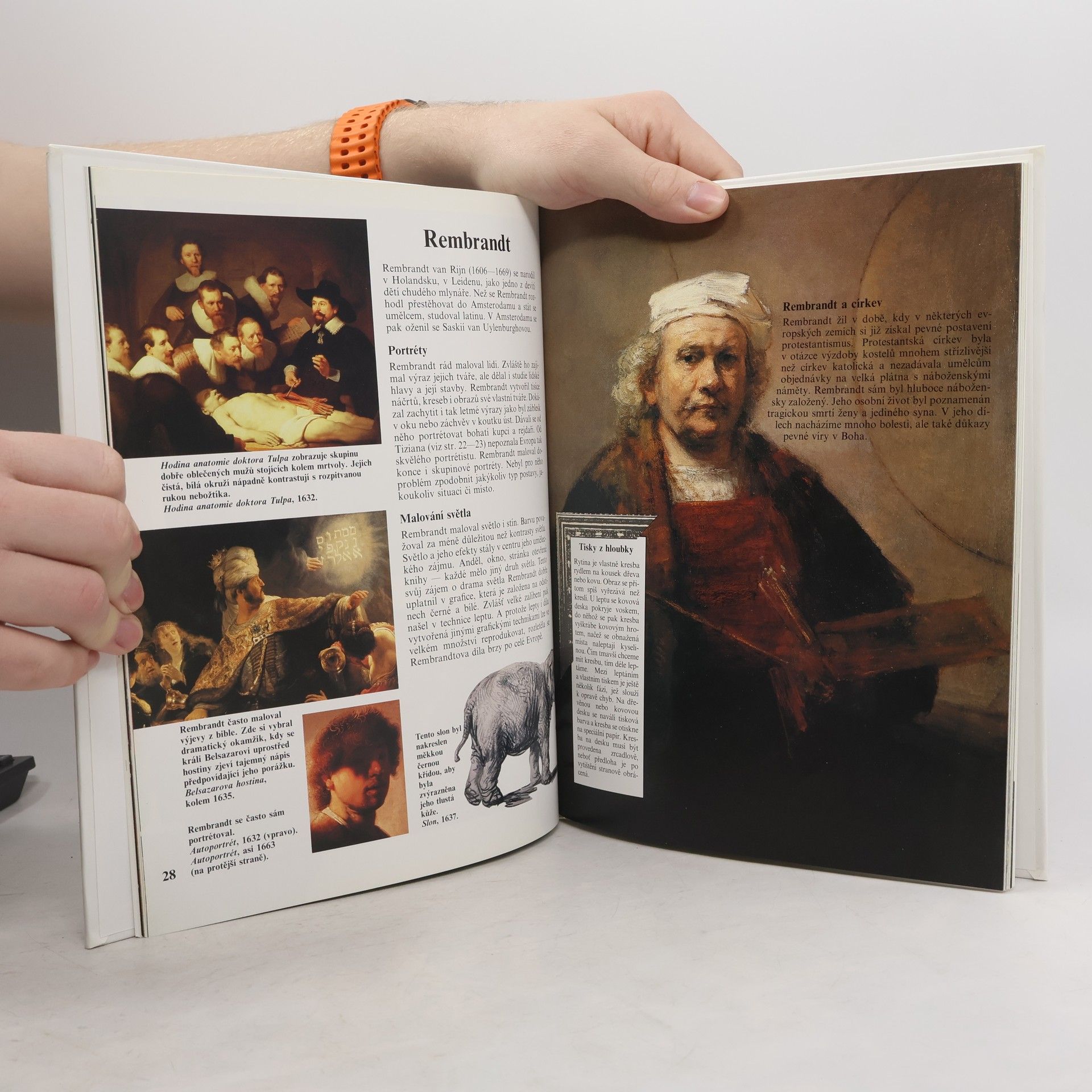 Obsahuje stručné dvoustrany témat: pravěké jeskyně ve Francii, malby na zdech a vázách v starověkém Řecku a Římě, zářivé středověké oltářní obrazy, renesance - úžasné vynálezy Leonarda da Vinciho, dvorští malíři evropských královských rodin, svědkové Francouzské revoluce, impresionisté malující barvami slunce, génius Picasso a jeho následovníci.... celý text