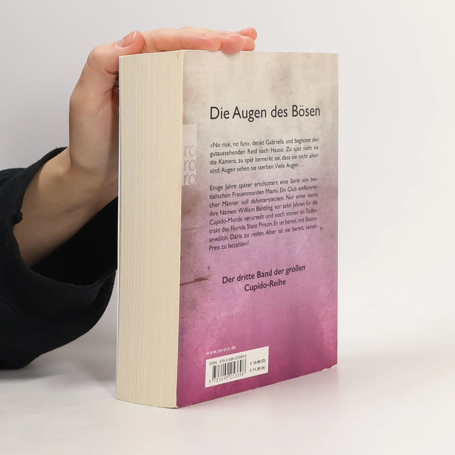 Die Augen des Bösen«No risk, no fun», denkt Gabriella und begleitet den gutaussehenden Reid nach Hause. Zu spät sieht sie die Kamera, zu spät bemerkt sie, dass sie nicht allein sind: Augen sehen sie sterben. Viele Augen …Einige Jahre später erschüttert eine Serie von bestialischen Frauenmorden Miami. Ein Club einflussreicher Männer soll dahinterstecken. Nur einer kennt ihre Namen: William Bantling, vor zehn Jahren für die Cupido-Morde verurteilt und noch immer im Todestrakt des Florida State Prison. Er ist bereit, mit Staatsanwältin Daria zu reden. Aber ist sie bereit, seinen Preis zu bezahlen?Der dritte Band der großen Cupido-Reihe.