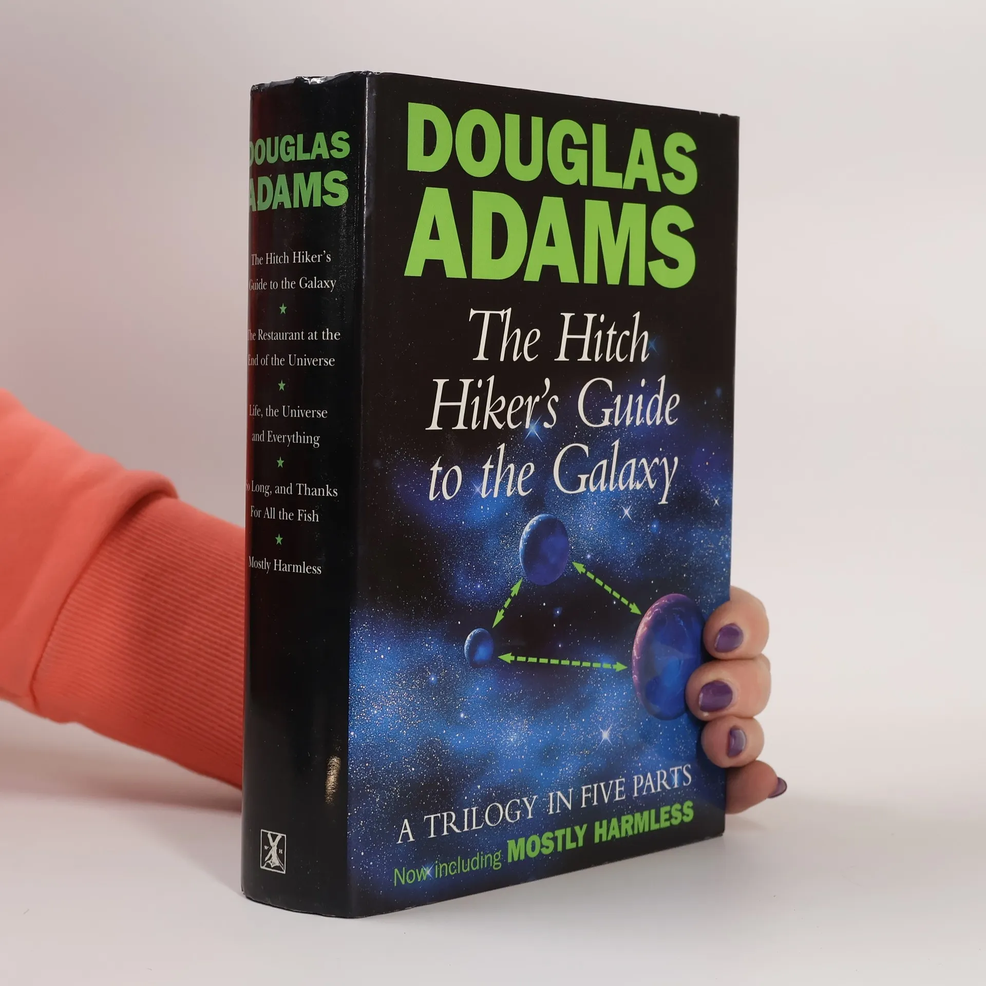 First a legendary radio series, then a bestselling book, the highly successful Hitch Hiker's Guide to the Galaxy needs no introduction. This omnibus edition has been reissued to include all five parts of the trilogy, incorporating, for the first time, Mostly Harmless, along with a guide to the guide and essential notes on how to leave the planet. This single hardback edition is indispensable for any would-be galactic traveller and for Douglas Adams fans everywhere. Contains: THE HITCH HIKER'S GUIDE TO THE GALAXY THE RESTAURANT AT THE END OF THE UNIWR.SE LIFE, THE UNIVERSE AND EVERYTHING SO LONG, AND THANKS FOR ALL THE FISH MOSTLY HARMI .E.SS