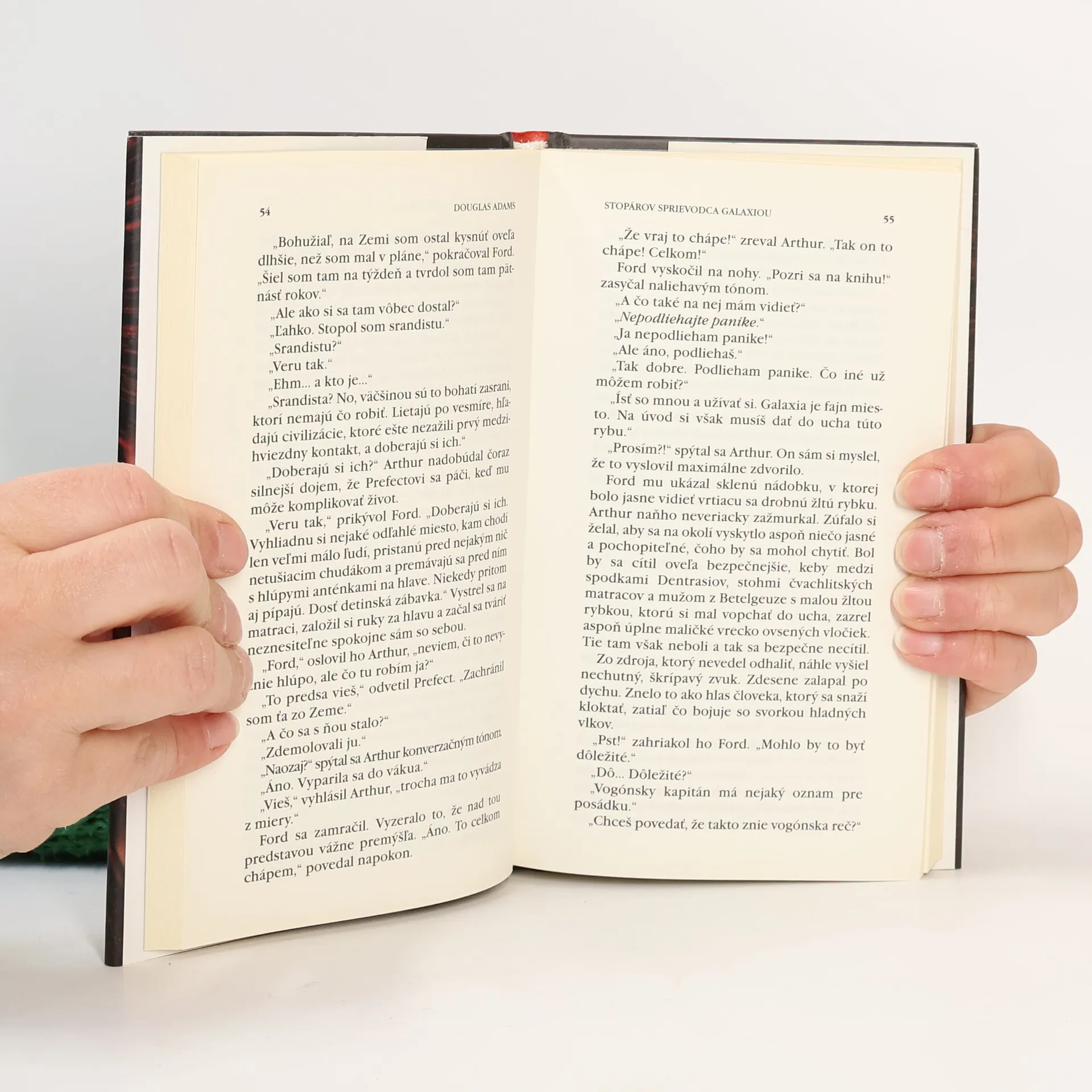 Arthurovi Dentovi, celkom obyčajnému človiečikovi kdesi z Anglicka, raz vo štvrtok ráno prídu zdemolovať dom, vraj kvôli stavbe diaľničného obchvatu. Snaží sa tomu zabrániť bojovným polihovaním pred buldozérom, no jeden z jeho priateľov, Ford Prefect, ho viac-menej nasilu odtiahne do krčmy na tri bleskurýchle pivá, pretože sa blíži koniec sveta. Asi o 12 minút neskôr koniec sveta skutočne nastane v podobe stavebnej čaty mimozemskej rasy Vogónov, ktorí prídu zdemolovať Zem kvôli stavbe hyperpriestorovej diaľnice. Tesne pred touto, pre všetkých ostatných smrteľnou udalosťou, sa Arthur s Fordom presunú na vogónsku stavebnú loď, ktorá ich odvezie do hlbín vesmíru. Ford totiž nepochádza z Guildfordu, ako na Zemi zvyčajne tvrdil, ale z malej planéty kdesi v okolí Betelgeuze, a pracuje ako terénny prieskumník pozoruhodnej knihy s názvom Stopárov sprievodca galaxiou – akéhosi elektronického bedekra pre vesmírnych stopárov obsahujúceho všetky informácie, ktoré potrebujete, ak túžite vidieť krásy vesmíru za menej ako tridsať altairských dolárov denne.