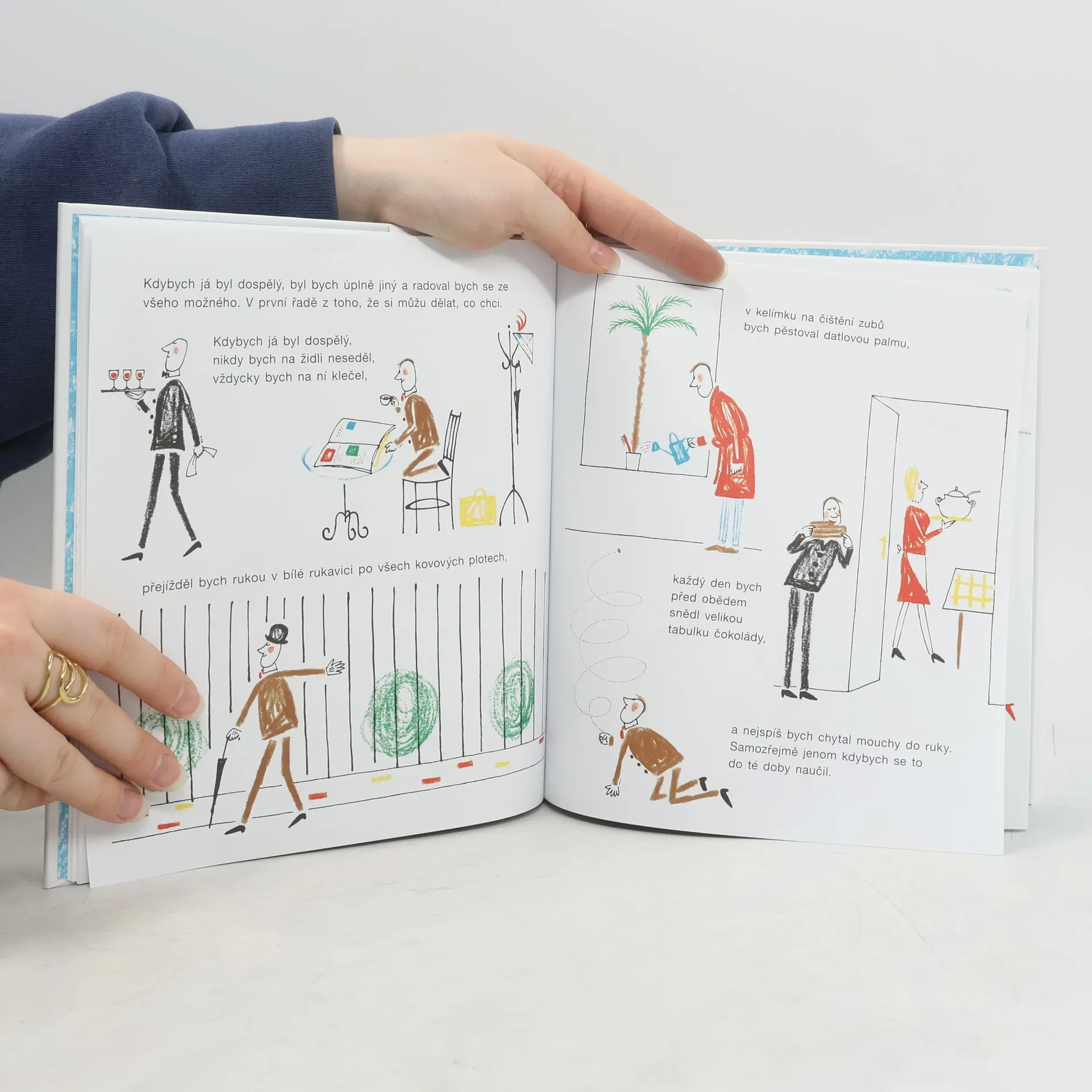 Nesmírně humorná knížka o tom, jak nefér je být dítětem – protože dětem neustále někdo něco přikazuje, zatímco dospělí si mohou dělat, co chtějí. Pohled na svět dětskýma očima se střídá s představami o tom, co by hlavní hrdina dělal a jak by se choval, kdyby byl dospělý, přičemž fantazii se meze rozhodně nekladou. Éva Janikovszky (1926–2003) je snad nejslavnější maďarskou autorkou knížek pro děti. Její knihy byly přeloženy do 35 jazyků. K jejím nejslavnějším obrázkovým knížkám, vytvořeným ve dvojici s ilustrátorem László Réberem, patří právě publikace Ha én feln őtt volnék – Kdybych já byl dospělý, která v originále vyšla v roce 1965 a od té doby se dočkala řady reedic.