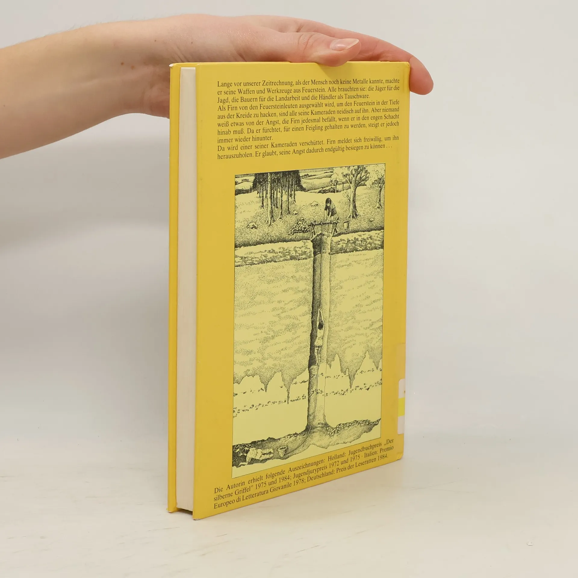 Firn, der junge Feuersteinhacker, versucht, seine Angst vor dem engen Schacht zu überwinden. - SW: Steinzeit