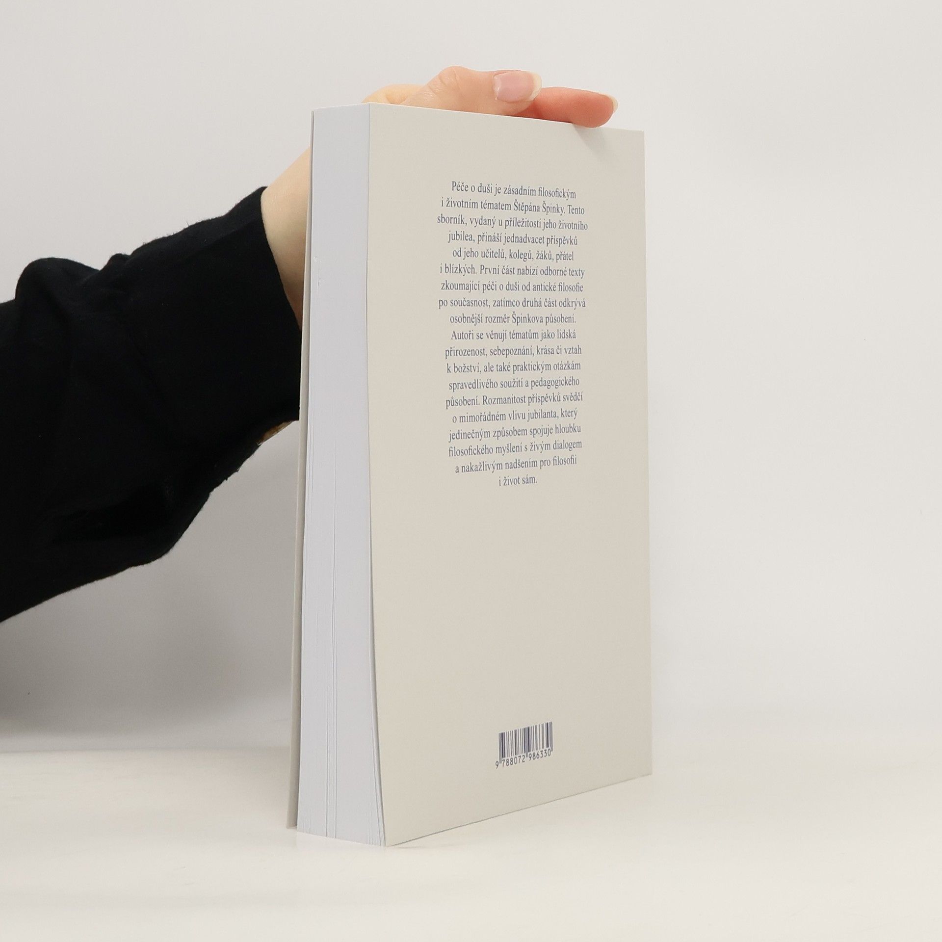 Péče o duši je zásadním filosofickým i životním tématem Štěpána Špinky. Tento sborník, vydaný u příležitosti jeho životního jubilea, přináší jednadvacet příspěvků od jeho učitelů, kolegů, žáků, přátel i blízkých. První část nabízí odborné texty zkoumající péči o duši od antické filosofie po současnost, zatímco druhá část odkrývá osobnější rozměr Špinkova působení. Autoři se věnují tématům jako lidská přirozenost, sebepoznání, krása či vztah k božství, ale také praktickým otázkám spravedlivého soužití a pedagogického působení. Rozmanitost příspěvků svědčí o mimořádném vlivu jubilanta, který jedinečným způsobem spojuje hloubku filosofického myšlení s živým dialogem a nakažlivým nadšením pro filosofii i život sám.