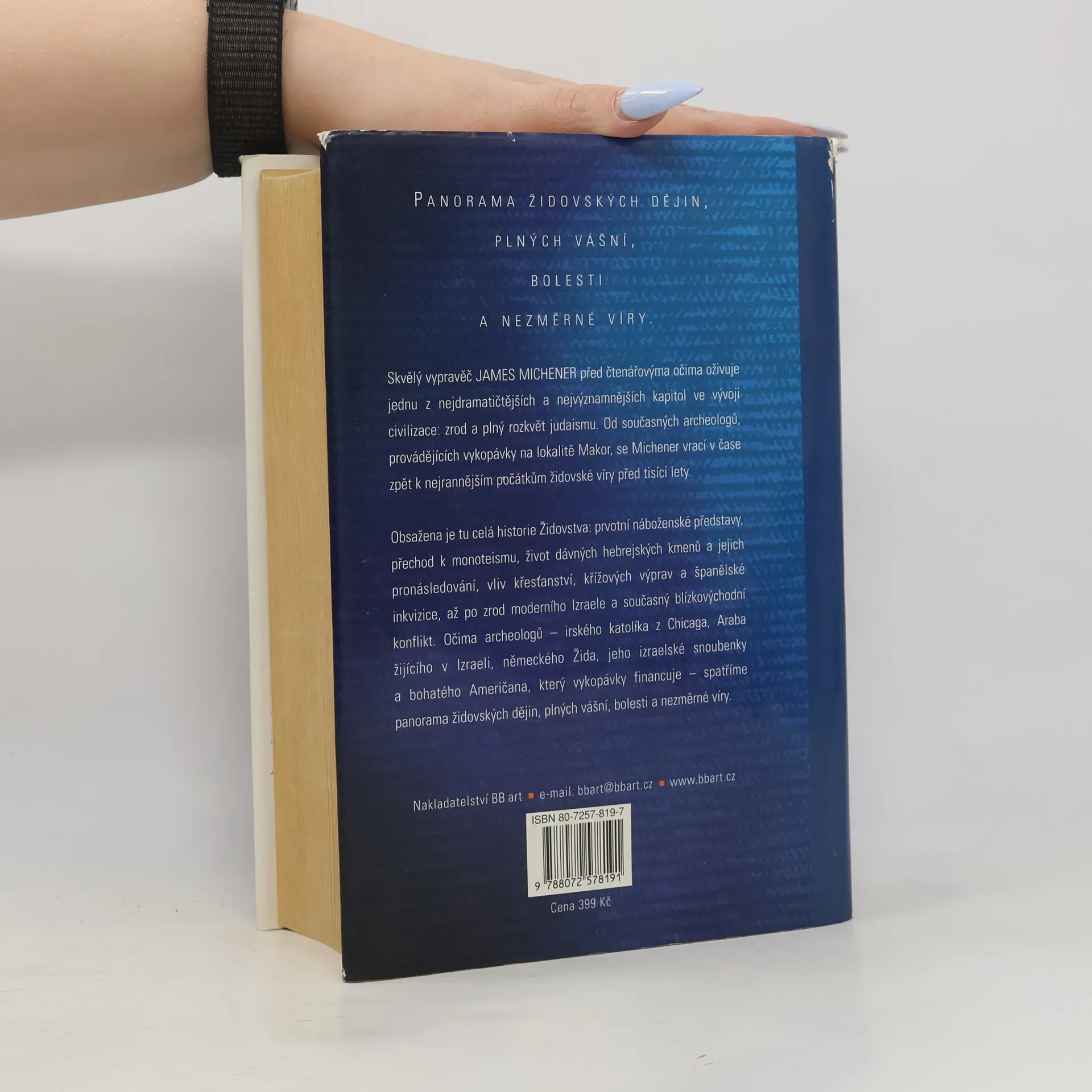 Obálkový podnázev: román o zrodu a rozkvětu judaismu. Od současných archeologů, provádějících vykopávky na lokalitě Makor, se Michener vrací v čase zpět k nejrannějším počátkům židovské víry před tisíci lety. Obsažena je tu celá historie židovstva: prvotní náboženské představy,přechod k monoteismu,život dávných hebrejských kmenů a jejich pronásledování, vliv křesťanství, křížových výprav a španělské inkvizice, až po zrod moderního Izraele a současný blízkovýchodní konflikt. Očima archeologů - irského katolíka z Chicaga, Araba žijícího v Izraeli, německého Žida, jeho izraelské snoubenky a bohatého Američana, který vykopávky financuje - spatříme panorama židovských dějin, plných vášní, bolesti a nezměrné víry.