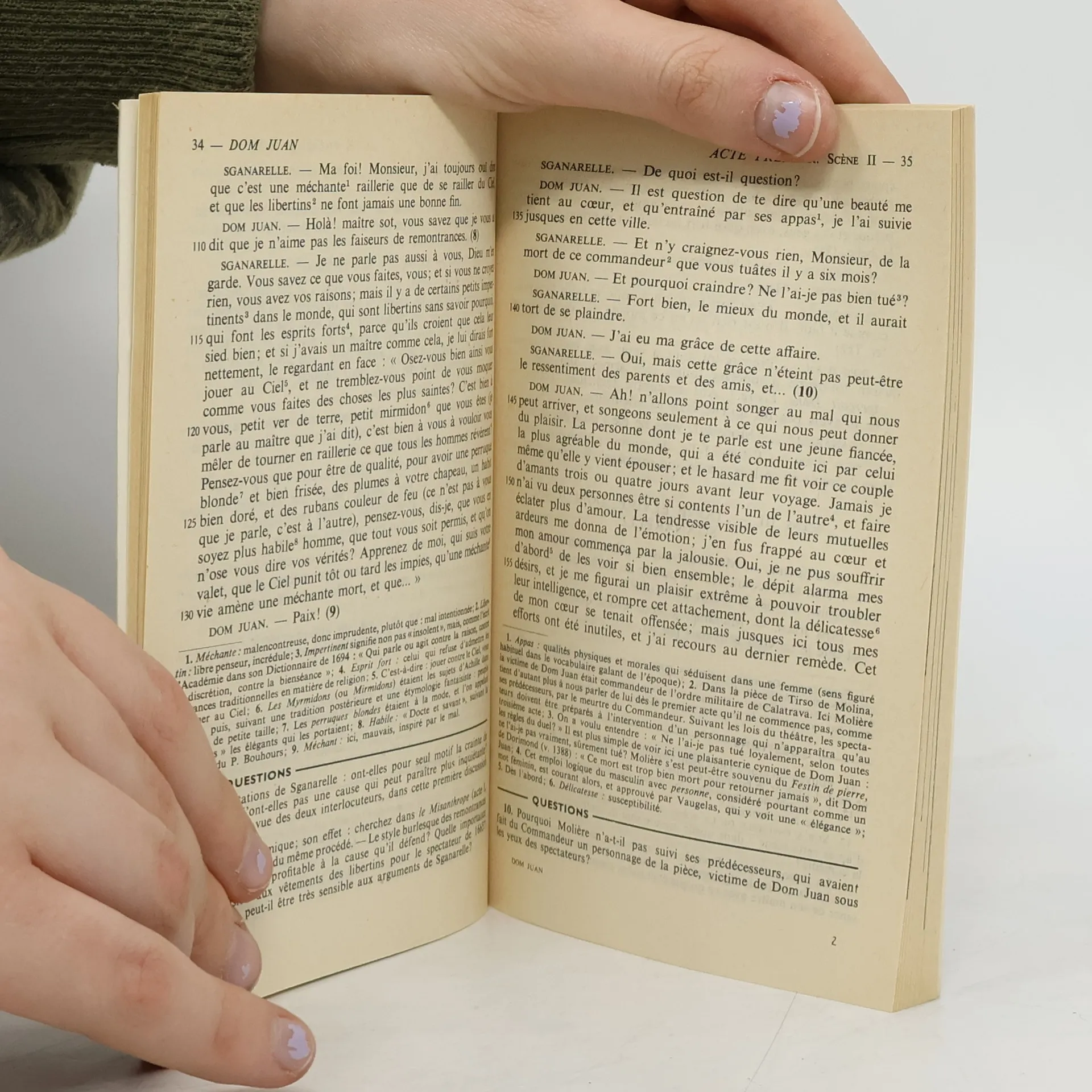 Dom Juan ou le Festin de pierre est une comédie de Molière en cinq actes et en prose. Dom Juan, jeune noble accumule les conquêtes amoureuses, séduisant aussi bien des jeunes filles nobles que des servantes. Il est seulement intéressé par la conquête et abandonne les jeunes femmes dès qu'elles sont séduites. "L'hypocrisie est un vice à la mode, et tous les vices à la mode passent pour vertus" : voilà comment Dom Juan se justifie auprès de son valet Sganarelle, scandalisé de voir son maître tromper tout le monde autour de lui, des femmes les plus naïves qu'il séduit sans vergogne aux hommes les plus nobles qu'il mène par le bout du nez sans se démonter. De fait, Dom Juan n'a qu'une ambition : jouir de tous les plaisirs, sans jamais céder aux sirènes de la morale. Il lui faut toutes les voluptés et il les obtient facilement en manipulant ses victimes avec des mots trompeurs. Seule la mort pourrait l'arrêter : n'est-ce pas elle justement qui vient le chercher, lorsque la statue du commandeur s'anime sous ses yeux ? Débauché fameux ou épicurien averti, Dom Juan a suscité tous les débats, toutes les polémiques, toutes les analyses et, encore une fois, c'est Molière que l'on applaudit, lui qui n'a pas son pareil pour désigner et railler, mi-amer, mi-goguenard, les travers de la société. --Karla Manuele