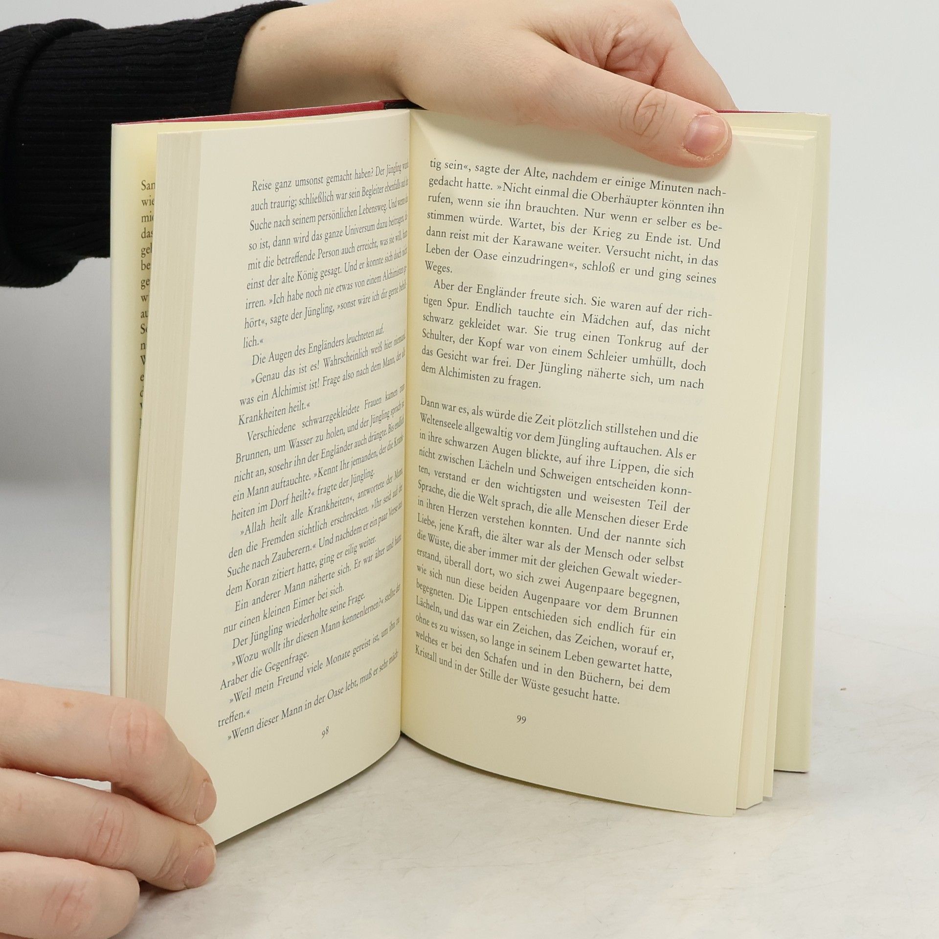 Santiago, ein andalusischer Hirte, hat einen wiederkehrenden Traum: Am Fuß der Pyramiden liege ein Schatz für ihn bereit. Soll er das Vertraute für möglichen Reichtum aufgeben? Santiago ist mutig genug, seinem Traum zu folgen. Er begibt sich auf eine Reise, die ihn über die Souks in Tanger bis nach Ägypten führt, er findet in der Stille der Wüste auch zu sich selbst und erkennt, dass das Leben Schätze bereithält, die nicht mit Gold aufzuwiegen sind.