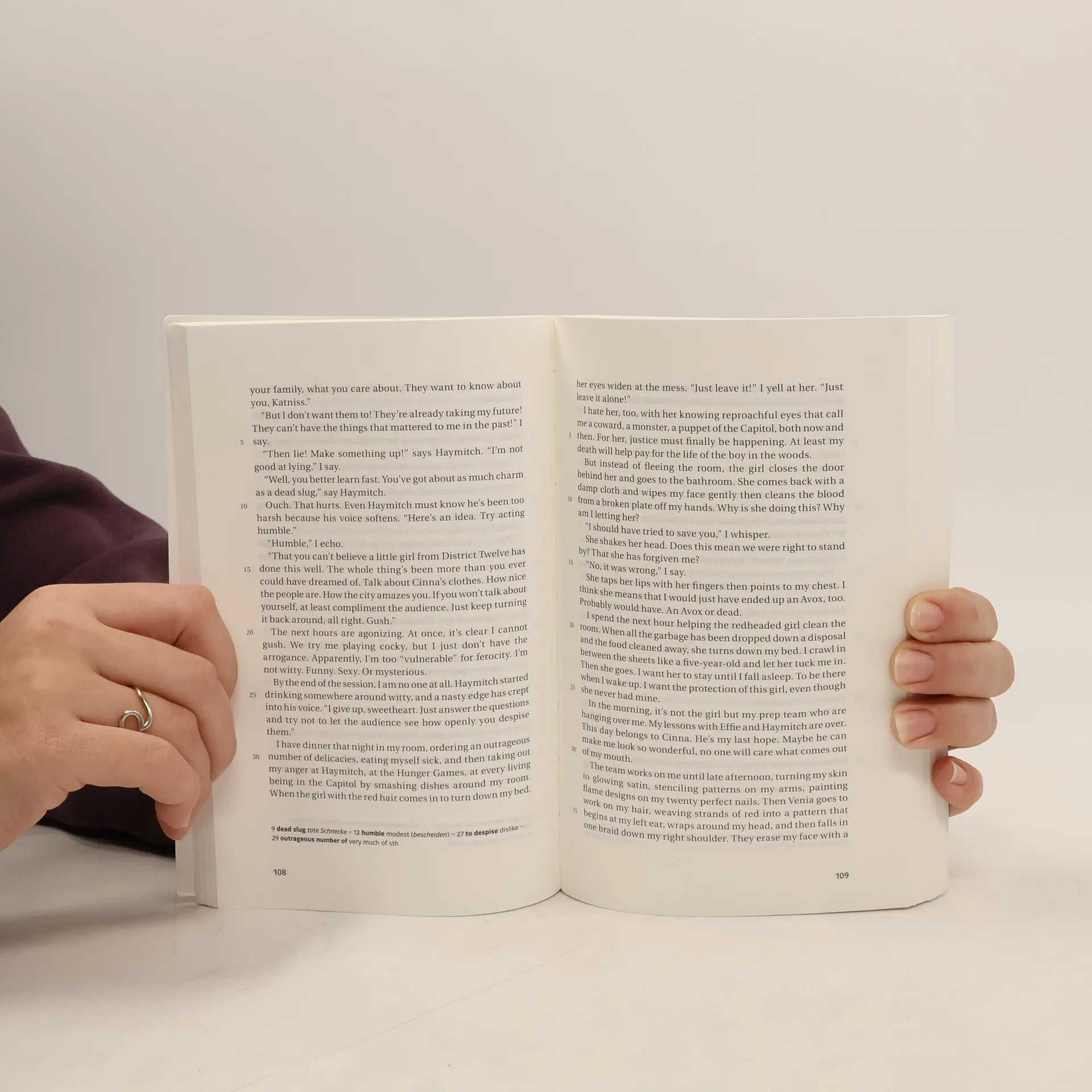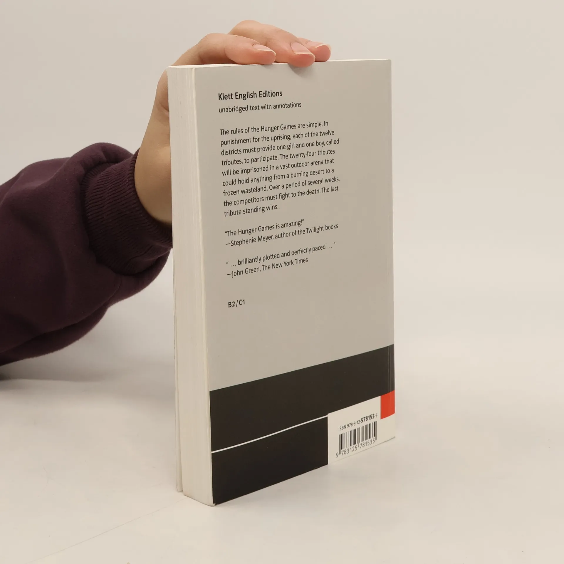 In den Ruinen des ehemaligen Nordamerika liegt die Nation Panem, eine schillernde Hauptstadt umgeben von zwölf Außenbezirken. Um diese Bezirke unter Kontrolle zu halten, zwingt man sie, jährlich einen Jungen und ein Mädchen zwischen 12 und 18 auszuwählen - um live im Fernsehen auf Leben und Tod gegeneinander zu kämpfen. Als die 16-jährige Katniss Everdeen den Platz ihrer Schwester im Wettkampf einnimmt, hält sie das zunächst für ein Todesurteil. Aber Katniss ist dem Tod schon oft begegnet und noch immer entkommen. Doch wenn sie gewinnen und überleben möchte, wird sie schwierige Entscheidungen treffen müssen: Überleben oder Menschlichkeit? Leben oder Liebe? Abiturempfehlung zu den Themenbereichen Utopia, Dystopia und Media and Society