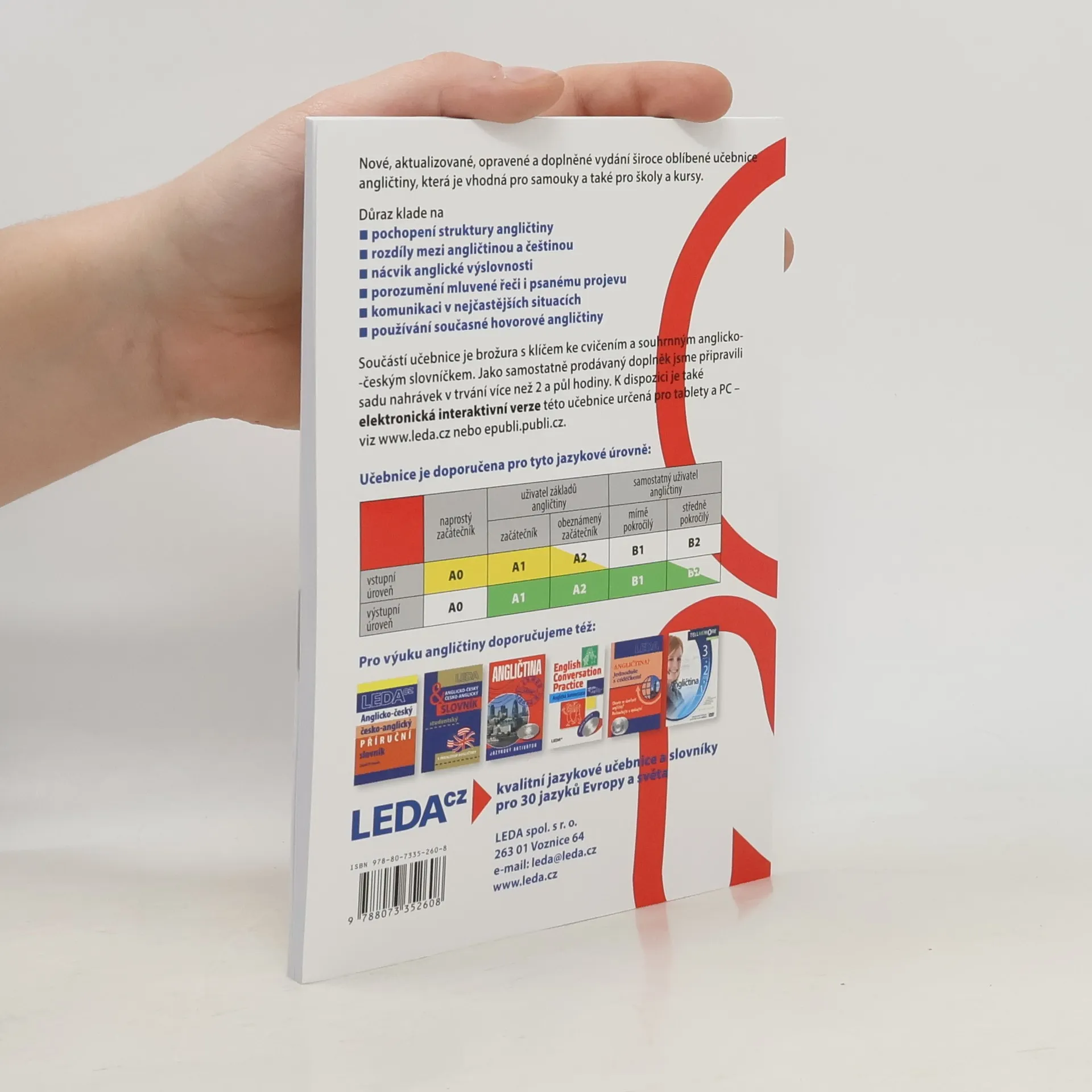Opravené, aktualizované a doplněné vydání oblíbené učebnice angličtiny, která je vhodná pro samouky, školy a kurzy. Skvělou formou vede k osvojení znalostí anglické mluvnice, slovní zásoby v rozsahu přibližně 1 800 slov. Učebnice za zaměřuje především na poslech s porozuměním a nácvik plynulého a správného vyjadřování v běžných situacích.