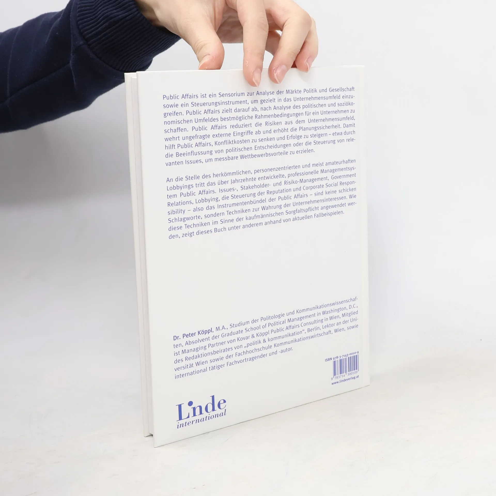 Wie professionelles Lobbying die Unternehmenserfolge absichert und steigert. SFührungskräfte geraten zusehends unter Druck: Aufrufe zum Produkt-Boykott, neue Gesetze, die Jagd der Medien nach Konfliktstoff werfen die Frage auf, ob es für Unternehmen so etwas wie Planungssicherheit überhaupt noch gibt. Die Folge: ungeplante Kosten, Schäden an der Reputation und dramatische Korrekturen an Zielvorgaben. Peter Köppl zeigt dem Leser, wie er mit Public Affairs das Umfeld seines Unternehmens aktiv so gestalten kann, dass die Erreichung der formulierten Ziele möglich ist: durch Lobbying, die Beeinflussung von politischen und gesetzlichen Entscheidungen oder durch permanentes Risikomanagement. Denn wer Polit- und Medienthemen und Widerstände vorhersieht und entsprechend reagiert, kann Wettbewerbsvorteile herausschlagen