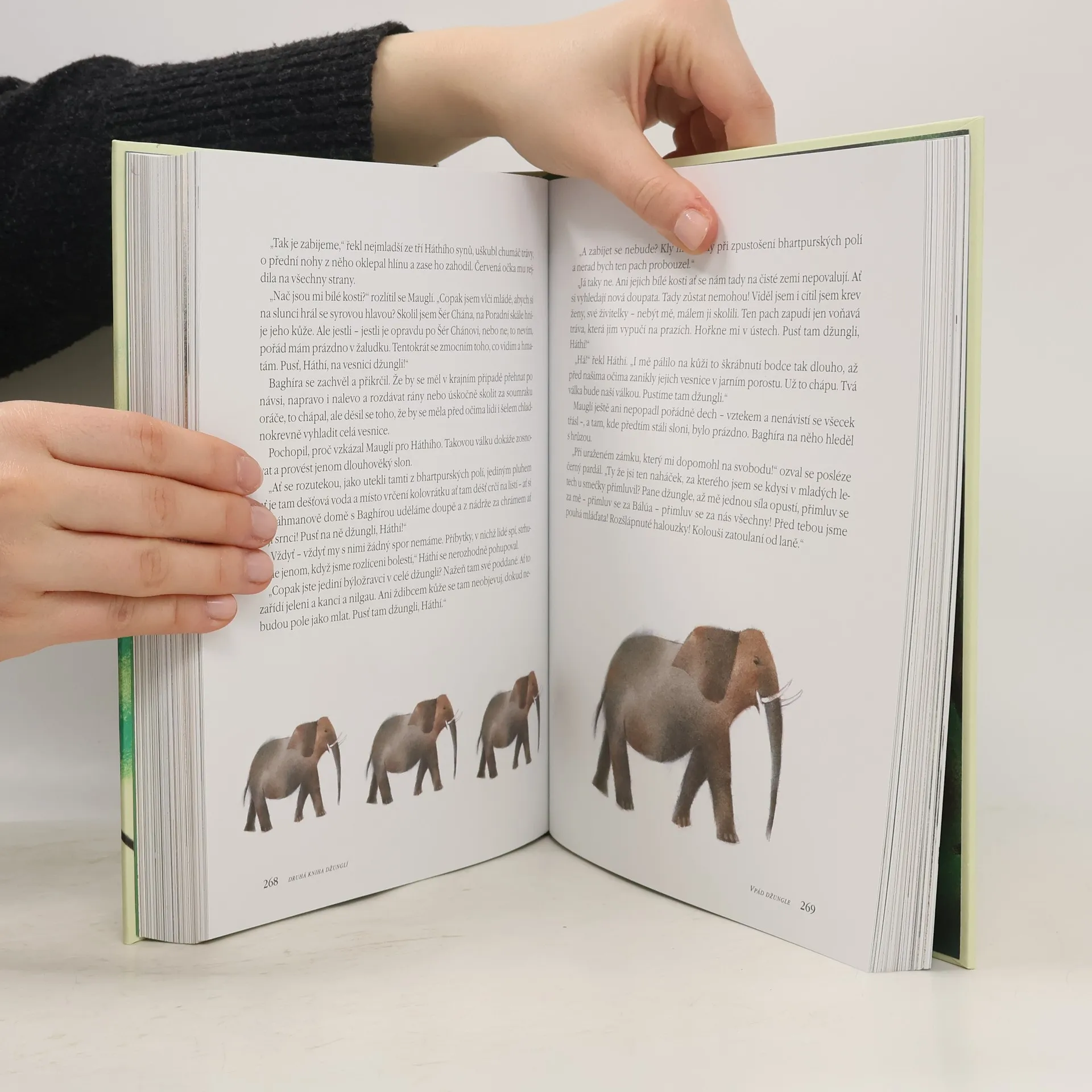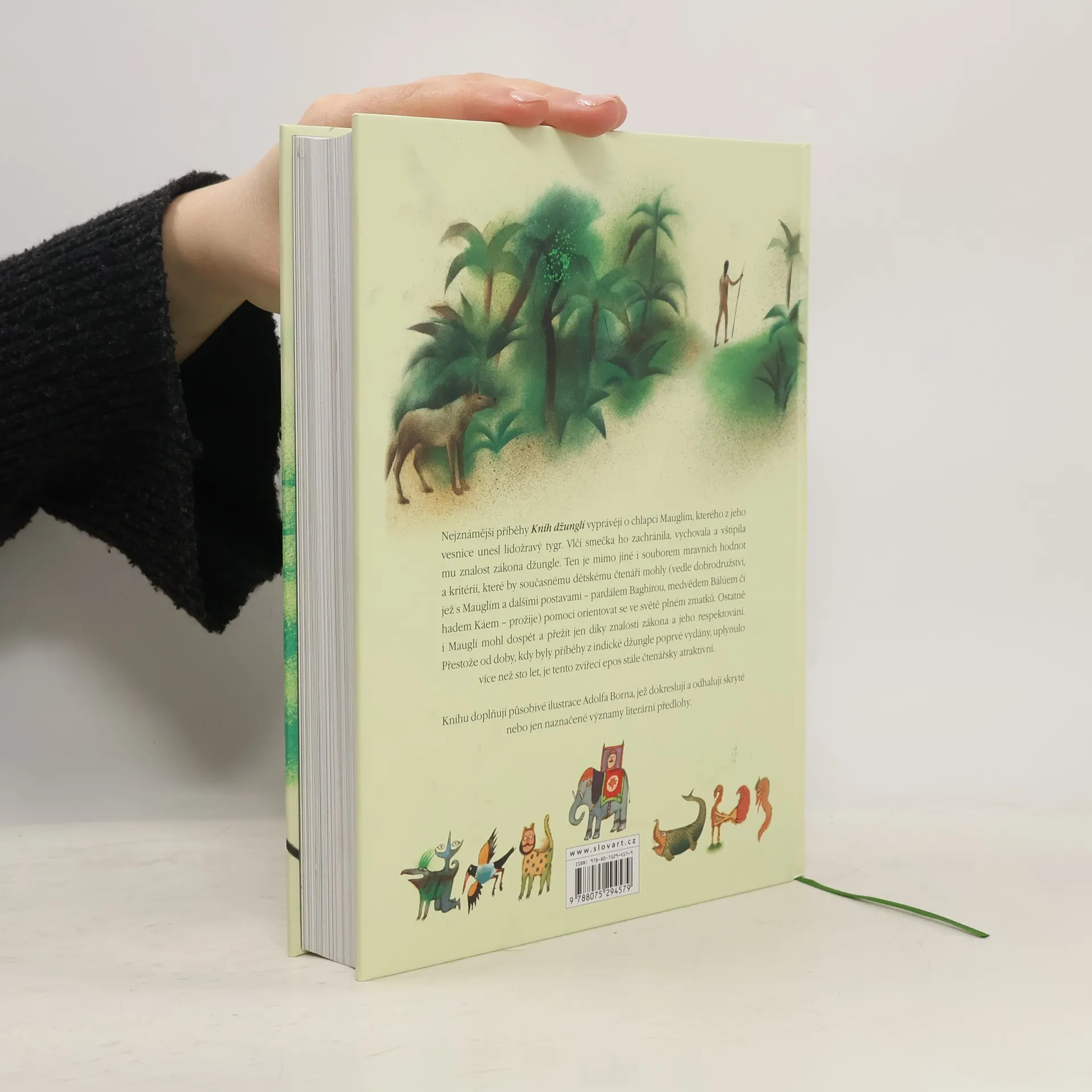 Nejznámější příběhy Knih džunglí vyprávějí o chlapci Mauglím, kterého z jeho vesnice unesl lidožravý tygr. Vlčí smečka ho zachránila, vychovala a vštípila mu znalost zákona džungle. Ten je mimo jiné i souborem mravních hodnot a kritérií, které by současnému dětskému čtenáři mohly (vedle dobrodružství, jež s Mauglím a dalšími postavami – pardálem Baghírou, medvědem Bálúem či hadem Káem – prožije) pomoci orientovat se ve světě plném zmatků. Ostatně i Mauglí mohl dospět a přežít jen díky znalosti zákona a jeho respektování. Přestože od doby, kdy byly příběhy z indické džungle poprvé vydány, uplynulo více než sto let, je tento zvířecí epos stále čtenářsky atraktivní. Knihu doplňují působivé ilustrace Adolfa Borna, jež dokreslují a odhalují skryté nebo jen naznačené významy literární předlohy.