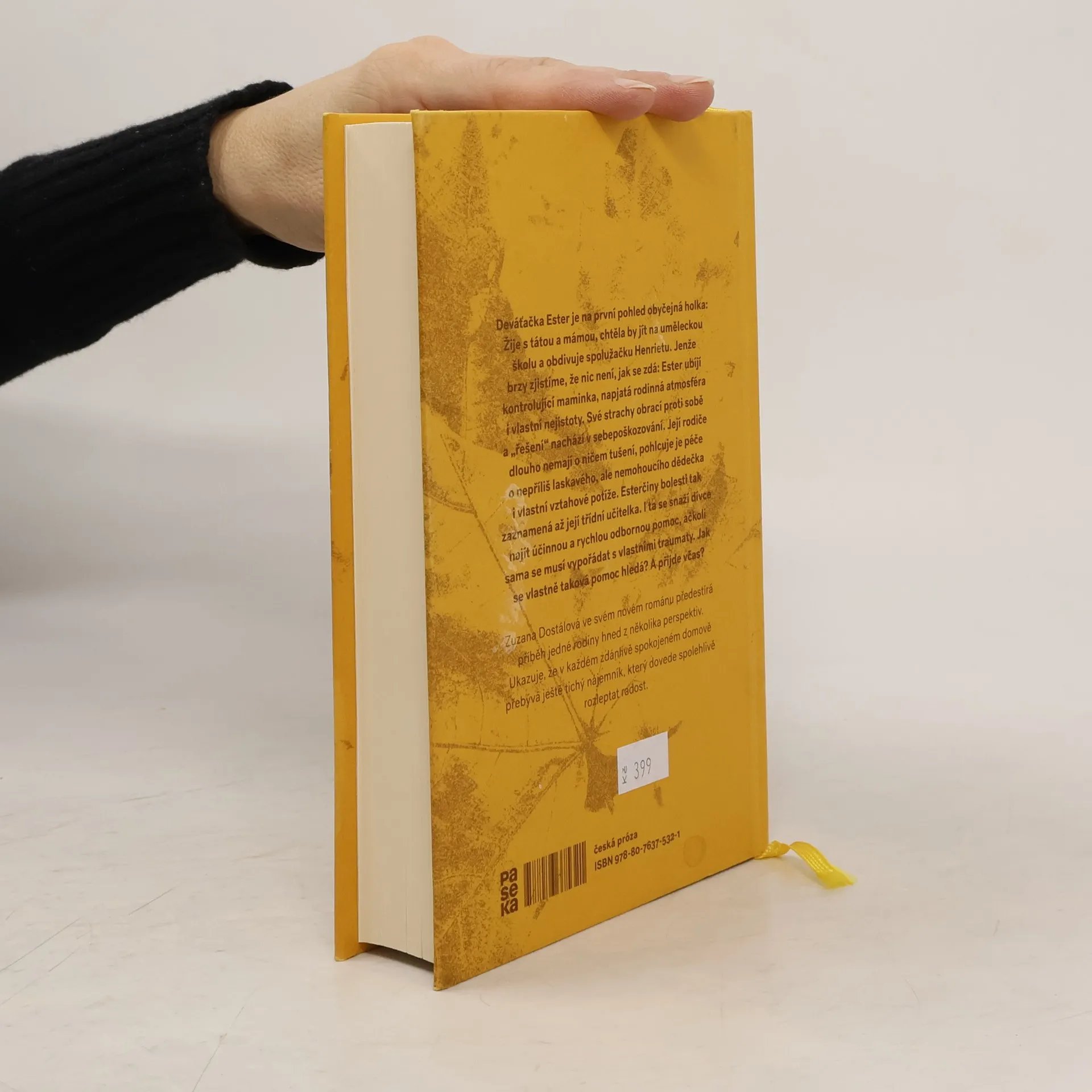 Deváťačka Ester je na první pohled obyčejná holka: Žije s tátou a mámou, chtěla by jít na uměleckou školu a obdivuje spolužačku Henrietu. Jenže brzy zjistíme, že nic není, jak se zdá: Ester ubíjí kontrolující maminka, napjatá rodinná atmosféra i vlastní nejistoty. Své strachy obrací proti sobě a „řešení“ nachází v sebepoškozování. Její rodiče dlouho nemají o ničem tušení, pohlcuje je péče o nepříliš laskavého, ale nemohoucího dědečka i vlastní vztahové potíže. Esterčiny bolesti tak zaznamená až její třídní učitelka. I ta se snaží dívce najít účinnou a rychlou odbornou pomoc, ačkoli sama se musí vypořádat s vlastními traumaty. Jak se vlastně taková pomoc hledá? A přijde včas? Zuzana Dostálová ve svém novém románu předestírá příběh jedné rodiny hned z několika perspektiv. Ukazuje, že v každém zdánlivě spokojeném domově přebývá ještě tichý nájemník, který dovede spolehlivě rozleptat radost.