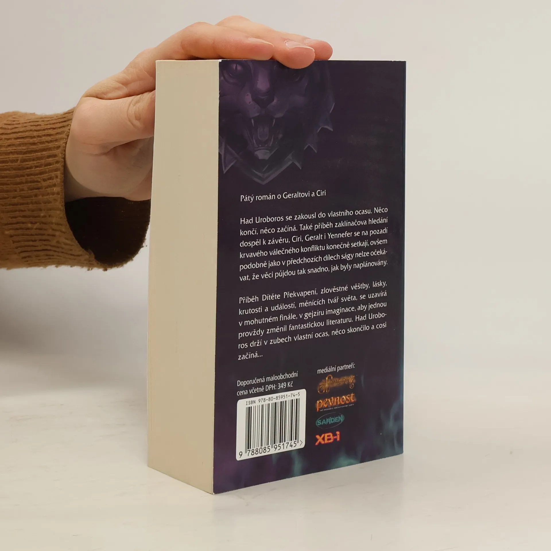 Konečně je tady závěrečný díl Zaklínače v nové podobě. * Had Uroboros se zakousl do vlastního ocasu. Něco končí, něco začíná. * Také příběh zaklínačova hledání dospěl k závěru, Ciri, Geralt i Yennefer se na pozadí krvavého válečného konfliktu konečně setkají, ovšem podobně jako v předchozích dílech ságy nelze očekávat, že věci půjdou tak snadno, jak byly naplánovány. * Příběh Dítěte Překvapení, zlověstné věštby, lásky, krutosti a událostí, měnících tvář světa, se uzavírá v mohutném finále, v gejzíru imaginace, aby jednou provždy změnil fantastickou literaturu. Had Uroboros drží v zubech vlastní ocas, něco skončilo a cosi začíná. 4. vyd.