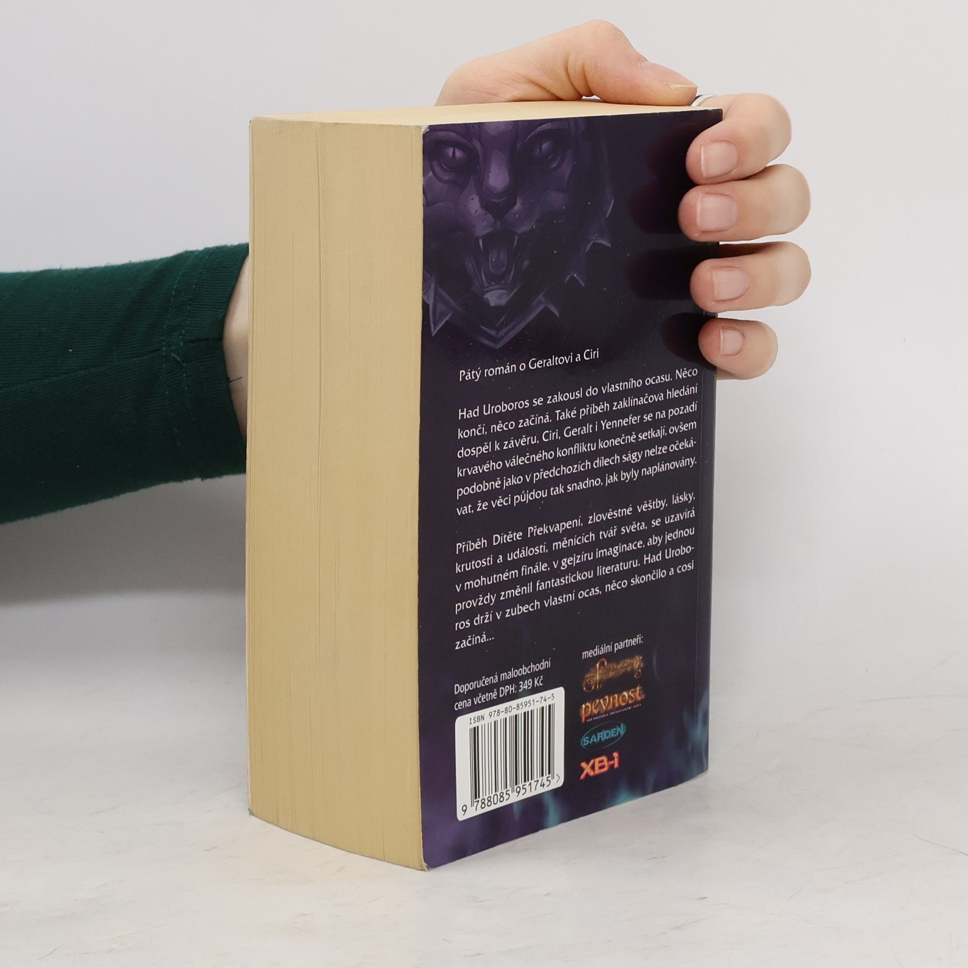 Konečně je tady závěrečný díl Zaklínače v nové podobě. * Had Uroboros se zakousl do vlastního ocasu. Něco končí, něco začíná. * Také příběh zaklínačova hledání dospěl k závěru, Ciri, Geralt i Yennefer se na pozadí krvavého válečného konfliktu konečně setkají, ovšem podobně jako v předchozích dílech ságy nelze očekávat, že věci půjdou tak snadno, jak byly naplánovány. * Příběh Dítěte Překvapení, zlověstné věštby, lásky, krutosti a událostí, měnících tvář světa, se uzavírá v mohutném finále, v gejzíru imaginace, aby jednou provždy změnil fantastickou literaturu. Had Uroboros drží v zubech vlastní ocas, něco skončilo a cosi začíná. 4. vyd.