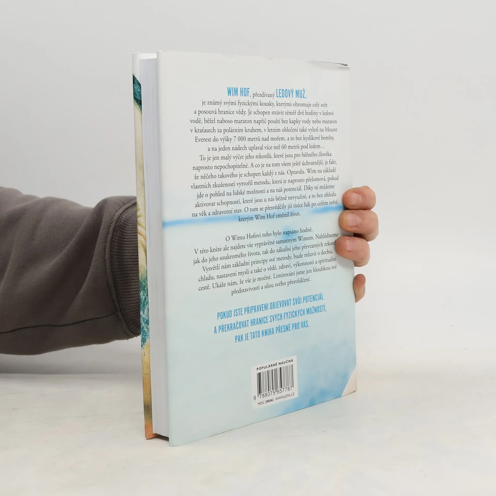 Jediná autorizovaná kniha Wima Hofa představuje převratnou metodu, která nám umožňuje využít náš fyzický i duševní potenciál. Wim Hof, známý jako Ledový muž, ohromuje svět svými neuvěřitelnými výkony, jako je strávení téměř dvou hodin v ledové vodě, běhání maratonů bez vody a výstupy na Mount Everest bez kyslíku. Tyto rekordy mohou vypadat nepochopitelně, ale Hof tvrdí, že podobných schopností může dosáhnout každý z nás. Na základě svých zkušeností vytvořil metodu, která mění pohled na lidské možnosti a aktivuje nevyužité schopnosti, bez ohledu na věk či zdravotní stav. Tisíce lidí po celém světě již pocítily pozitivní změny ve svém životě díky této metodě. Kniha nabízí osobní pohled na Hofův život a zákulisí jeho rekordů. Vysvětluje základní principy jeho metody, včetně technik dýchání, práce s chladem, nastavení mysli a souvislostí se zdravím a spirituálním rozvojem. Hof ukazuje, že naše limity jsou určeny pouze hloubkou naší představivosti a silou přesvědčení. Pokud jste připraveni objevovat svůj potenciál a překonávat fyzické hranice, tato kniha je pro vás. „Tato metoda je jednoduchá, přístupná a vědecky podložená. Může ji praktikovat kdokoli, bez dogmat, pouze s přijetím a svobodou.“