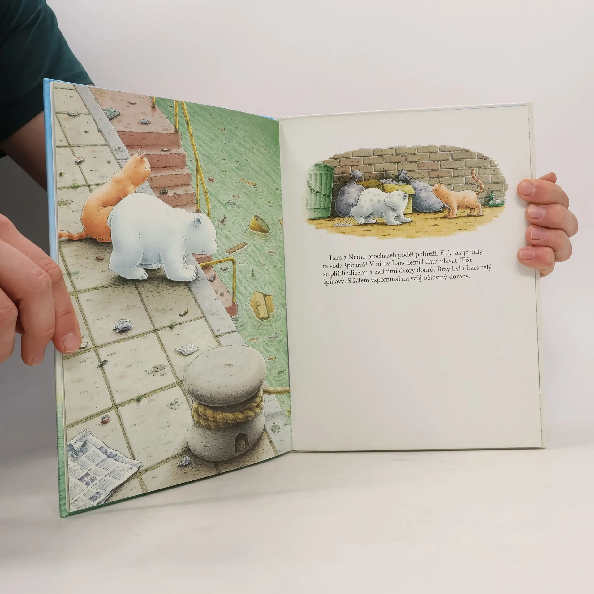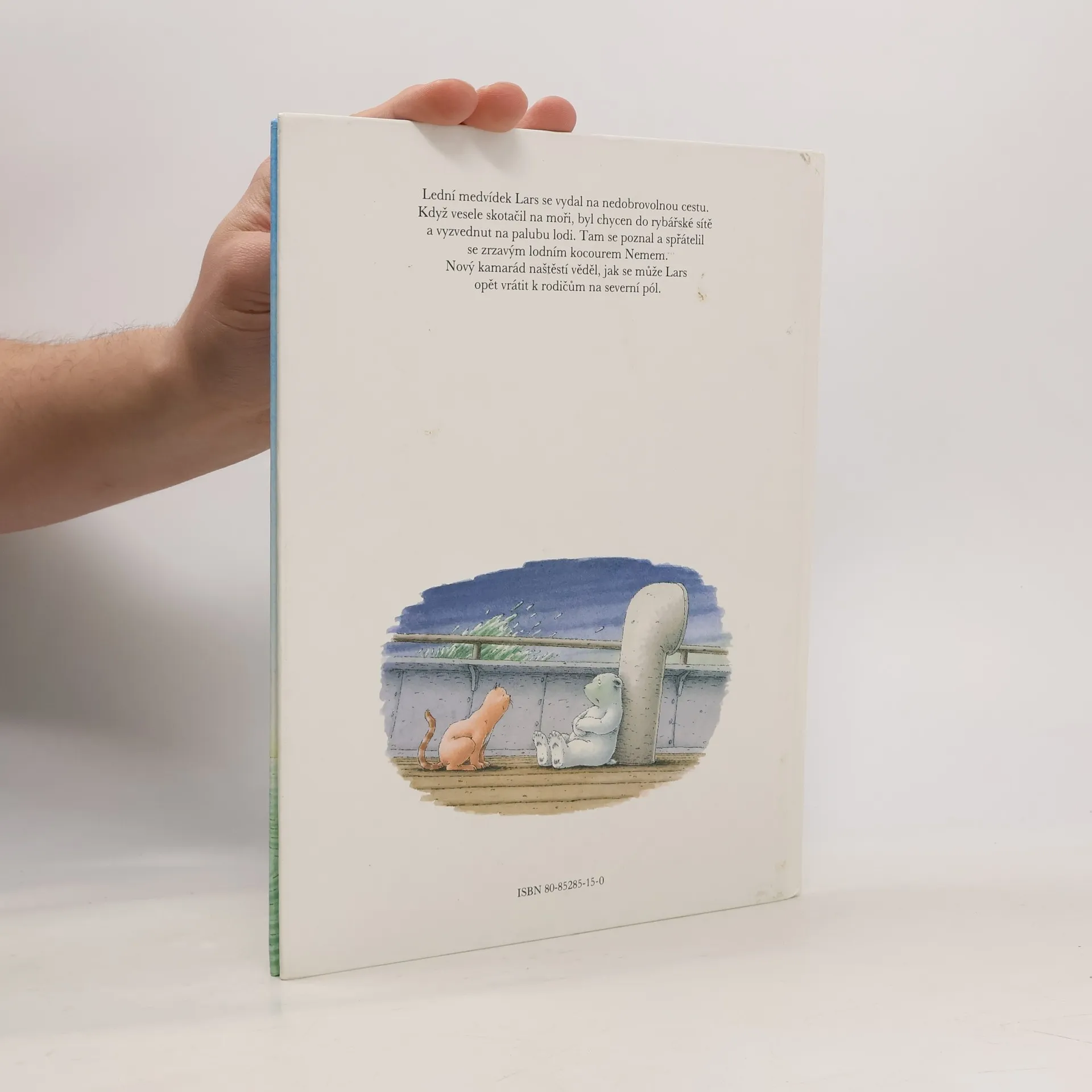 Vypráví a sám ilustruje autor. Lední medvídek Lars se vydal na nedobrovolnou cestu. Když vesele skotačil na moři, byl chycen do rybářské sítě a vyzvednut na palubu lodi. Tam se poznal a spřátelil se zrzavým lodním kocourem Nemem. Nový kamarád naštěstí věděl, jak se může Lars opět vrátit k rodičům na severní pol.