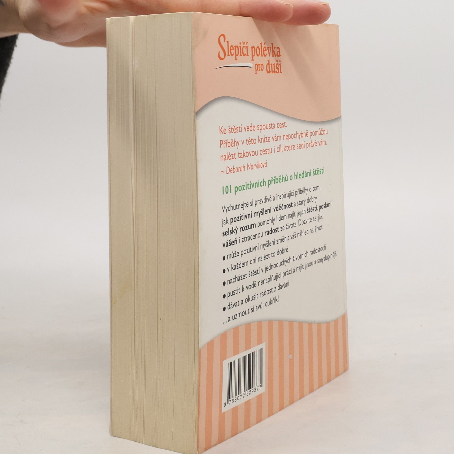 Ke štěstí vede spousta cest. Příběhy v této knize vám nepochybně pomůžou nalézt takovou cestu i cíl, které sedí právě vám. Vychutnejte si pravdivé a inspirující příběhy o tom, jak pozitivní myšlení, vděčnost a starý dobrý selský rozum pomohly lidem najít jejich štěstí, poslání, vášeň i ztracenou radost ze života. Dozvíte se jak: může pozitivní myšlení změnit váš náhled na život v každém dni nalézt to dobré jak si vážit toho, co máte nacházet štěstí v jednoduchých životních radostech pustit k vodě nenaplňující práci a najít jinou a smysluplnější dávat a okusit radost z dávání ... a uzmout si svůj cukřík! Předmluva Deborah Norvillová