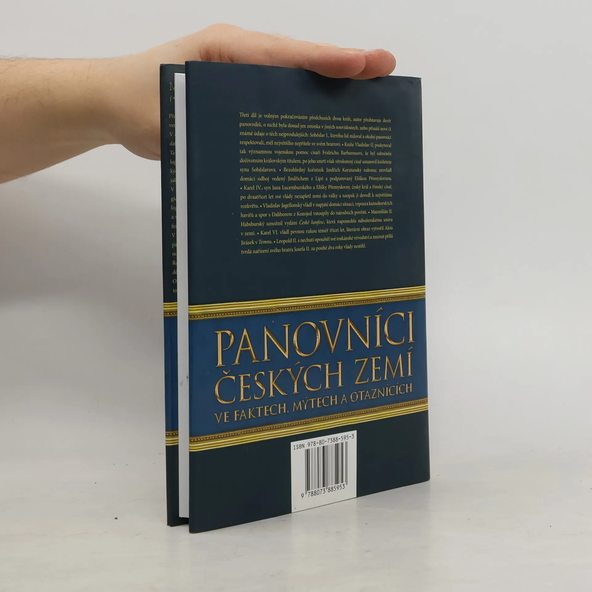 Vladimír Liška se vrací s již třetím dílem úspěšných medailonků významných českých králů a knížat. Tentokrát nám důkladně představí Soběslava I., Vladislava II., Soběslava II., Jindřicha Korutanského, Karla IV., Vladislava II. Jagelonského, Maxmiliána Habsburského a Karla VI. Erudované texty doplňuje bohatý ilustrační materiál.