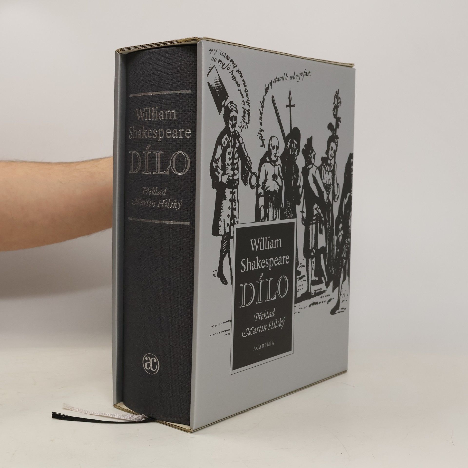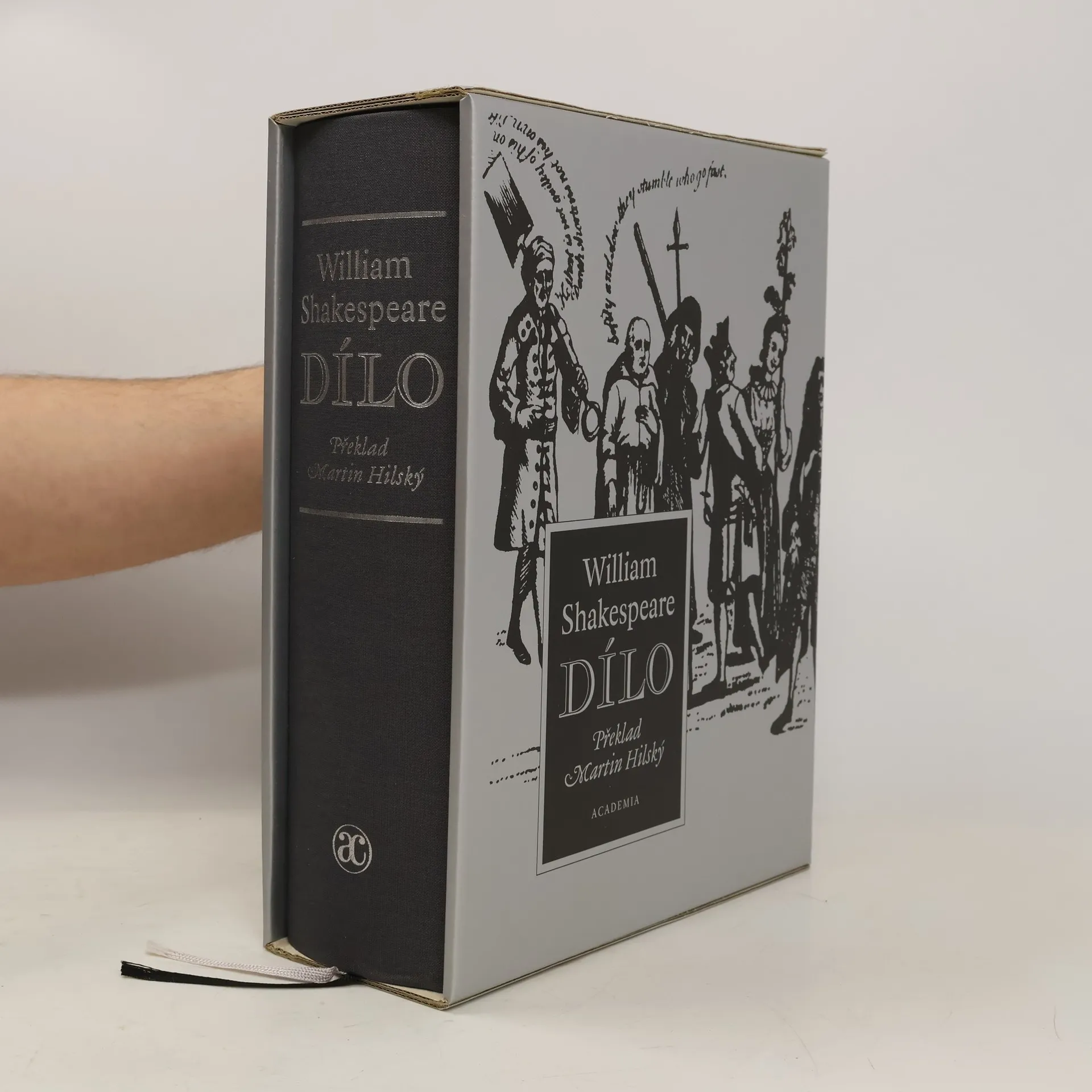V českém prostředí unikátní vydavatelský počin předkládá čtenáři v jednom svazku kompletní dílo Williama Shakespeara, tj. všechny hry tragické, komediální, historické i tzv. romance spolu se Sonety, dalšími básnickými skladbami (např. Venuše a Adonis či Znásilnění Lukrécie) a díly spornými a apokryfními, a to vše v překladu jediného člověka, předního českého anglisty a shakespearologa Martina Hilského. Kompletní dílo je doplněno úvodní studií, každá hra či báseň je uvozena stručnou charakteristikou a technickým popisem a celek uzavírá přehledný rejstřík shakespearovských postav. Kniha vychází ve dvou provedeních. Plátěné vazbě ve stříbrném kartonovém pouzdru a exkluzivní ručně vyrobené kožené vazbě. Info o ručně vyrobené kožené variantě jsou k dispozici na našem webu.