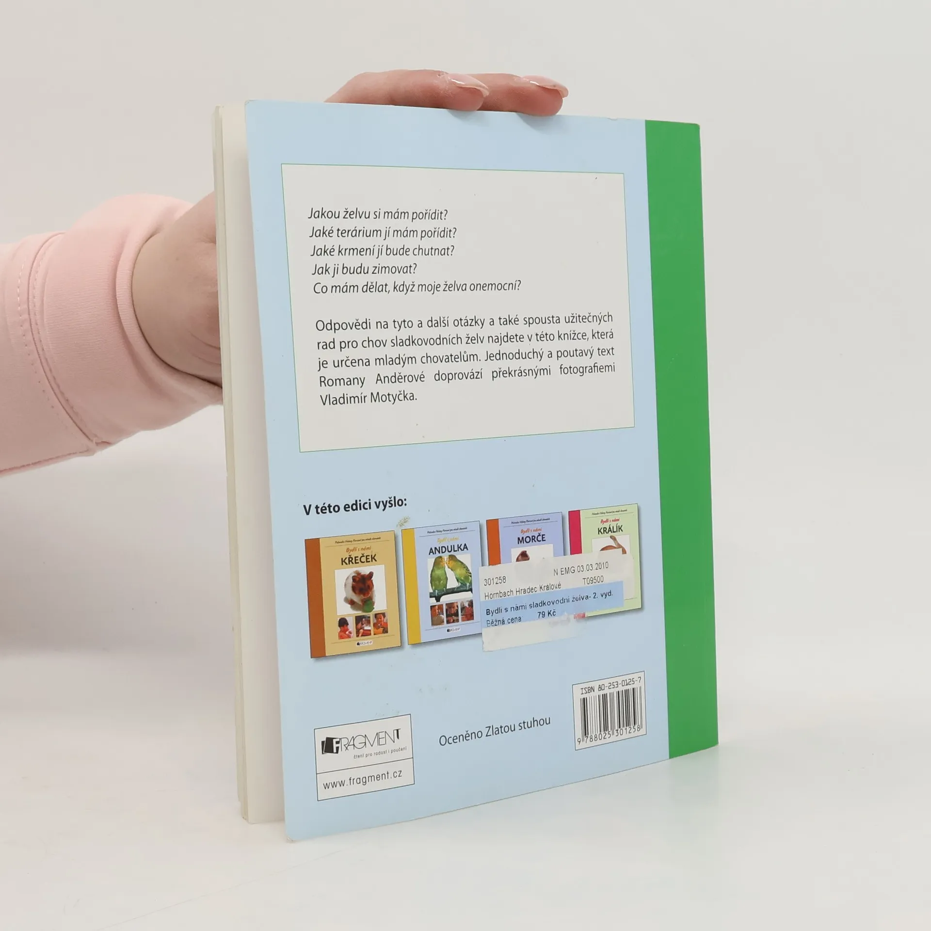 Bydlí s vámi sladkovodní želva? Chcete se dozvědět více o tom, jakou želvu pro chov zvolit, jak jí zařídit akvaterárium, čím ji krmit, nebo co si počít v případě nemoci? Právě vám, začínajícím chovatelům je určena tato praktická příručka s názorným a poučným textem i s množstvím barevných fotografií.