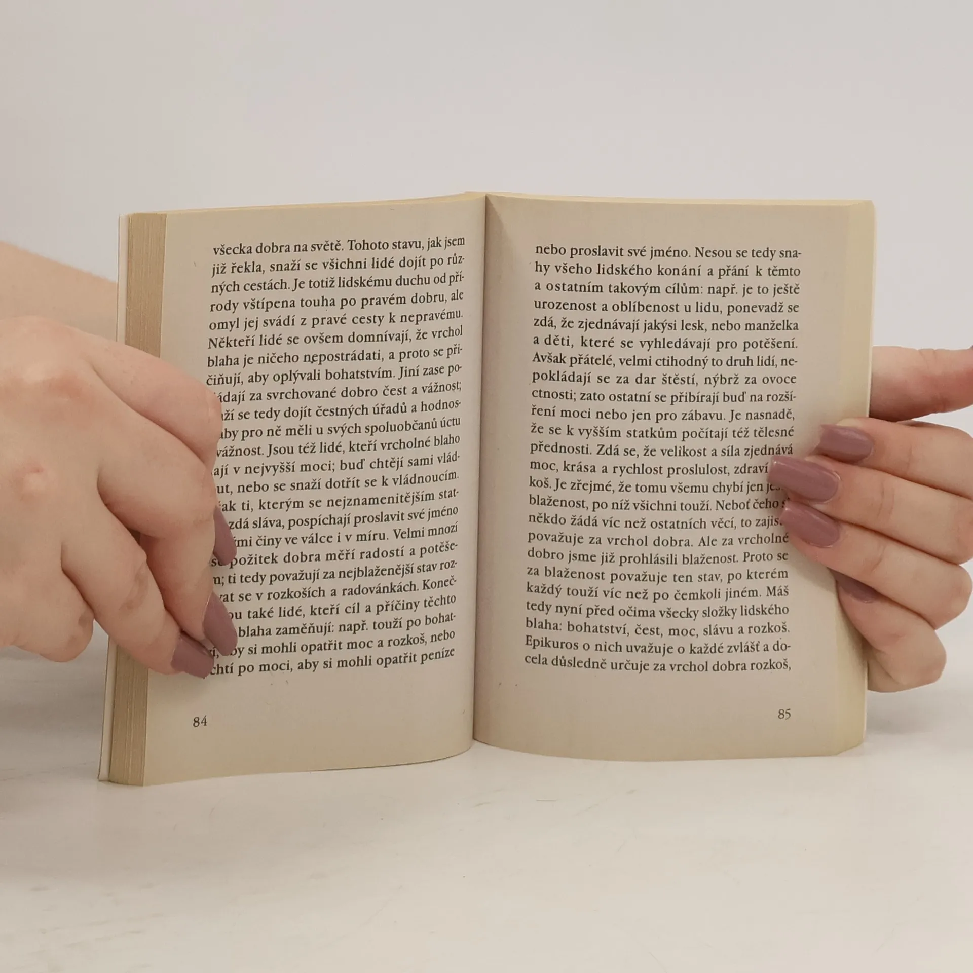 Nejčtenější Boëthiovo dílo, rozdělené do pěti knih, je útěšným dialogem mezi Boëthiem a zosobněnou Filosofií, napsaným ve vězení před jeho popravou. Text obsahuje 39 zpěvů v různých metrech, inspirovaných přírodní lyrikou a antickou mytologií, které slouží jako příměry k probíraným tématům. Boëthius se zde ukazuje jako znalec antické vzdělanosti a novoplatónismu. Kniha I představuje úvod, kde Filosofie přichází, aby Boëthia vyléčila z jeho strádání a ukázala mu, že svět neovládá Štěstena, ale boží prozřetelnost. Kniha II, formou stoické diatriby, zdůrazňuje, že štěstí nelze nalézt v bohatství, moci či slávě; i nepříznivý osud může být prospěšný, přičemž svornost a láska jsou základem blaha. Ve III. knize Filosofie nabízí hlubší léčbu, poukazující na to, že lidé hledají štěstí v pomíjivých statcích, avšak skutečné blaho lze nalézt pouze v Bohu. Kniha IV ukazuje, že ti, kdo vlastní skutečné dobro, mají bohatství a moc, zatímco zlí jsou bezmocní. Konečně, v páté knize se zkoumá vztah mezi božím předzvěděním a lidskou svobodou, přičemž Bůh vnímá čas a události z perspektivy věčnosti. Závěr nabádá čtenáře k ctnostnému životu, aby dosáhli štěstí, jímž je Bůh.