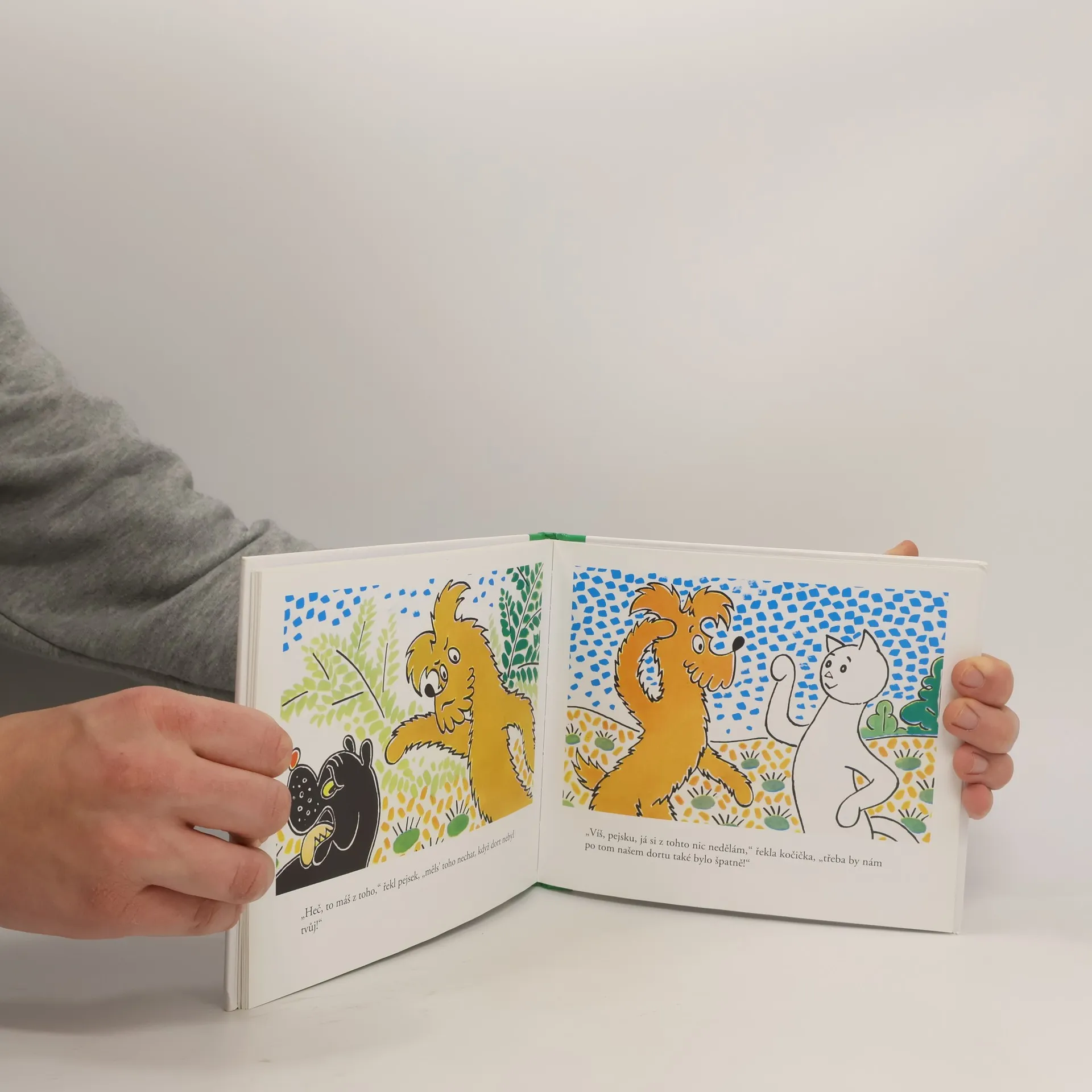 Milé děti i ostatní, oznamujeme Vám, že je všechno v nejlepším pořádku, a tak se spolu zase scházíme v téhle další knížce podle Povídání o pejskovi a kočičce, to je tedy celé o nás dvou, které napsal pan spisovatel Josef Čapek. Chceme k tomu ještě dodat, že jsme oba tuze rádi, že nás tak pěkně vypodobnil na svých obrázcích. Tahle nová knížka o nás se proto jmenuje Jak si dělali dort, protože jsme si jednou opravdu dělali takový velikánský dort, když jsme měli náhodou dohromady svátek i narozeniny. Bylo to ale také naposled, protože jsme poznali, že mnoho dobrého škodí. Ale víc už Vám nemůžeme prozradit, protože byste pak už snadno uhádli, jak to nakonec všechno dopadlo. Tak si pěkně čtěte a ten náš recept na opravdický dort snad ani mamince neukazujte. Raději ji poproste, ať Vám k Vašemu svátku nebo narozeninám udělá dort podle sebe nebo podle kuchařské knížky. Přejeme Vám dobré pochutnání. Tak nazdar a v úctě, Kočička a Pejsek