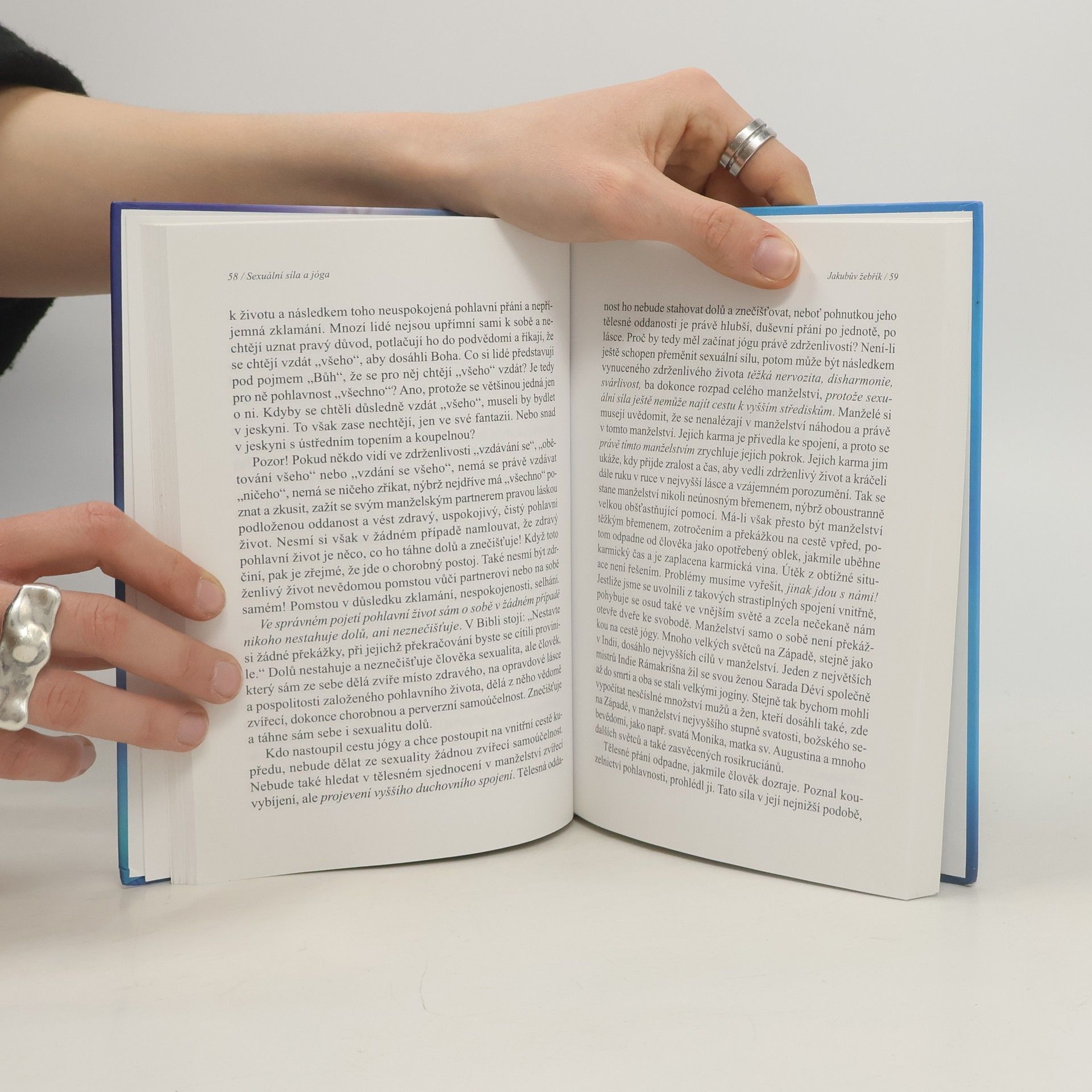 Světově proslulá a uznávaná učitelka jógy spisovatelka Elisabeth Haich se ve svém díle zabývá základní otázkou do jaké míry se může navzájem propojovat sexuální síla a spiritualita. Odkrývá toto úžasné tajemství, ve kterém může člověk s využitím vlastní sexuální síly jednak oživovat své tělo, zvyšovat jeho životní energií a udržovat je stále mladým... Zároveň však může stoupající životní energií probudit svá vyšší nervová a mozková centra. Sexuální síla tlačí a nutí vědomí člověka k cestě vzhůru a žene ho stále výš a výš... Svou kompetentností je tato kniha výborným a jedinečným poradcem pro všechny, kteří hledají inspiraci na vlastní cestě jógy. Předmluvu ke knize s 15 vyobrazeními napsal Helmut Speer. Kapitoly: Co je sexualita, Něco poznat a něčím být je totéž, Tvůrčí prahad, Falešné a správné pojetí sexuální síly, Jakubův žebřík, Jidášova zrada, Magické síly sugesce, hypnózy a mediumity, Sedm stupňů Jakubova žebříku, Svatý Jiří, Touha po jednotě a její úchylky, Slunce oživuje, ale může také zabíjet, Kouzelná květina, Praxe, Souhrn.