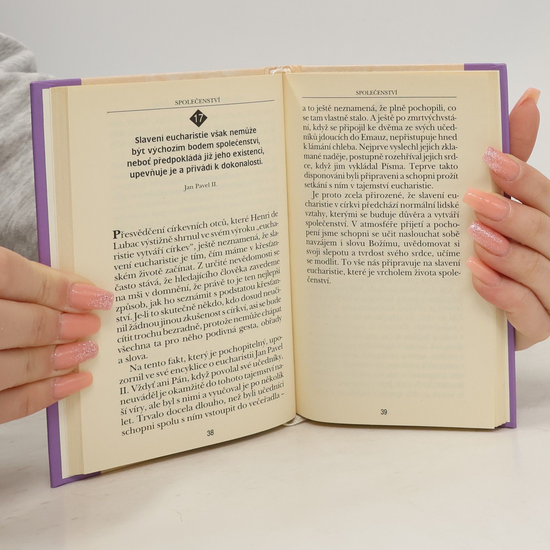 Někteří lidé jsou jako kostelní okna. Sledují tisíce bohoslužeb, a nehne to s nimi. Po pravdě řečeno, prostá venkovská stařenka může být na eucharistii přítomná s větším užitkem než profesor liturgiky. Text této knihy chce přispět právě k tomu, aby nám nesmírný dar svátosti eucharistie nezevšedněl. Dobrá kniha 2005 - Za knihu roku 2005 označila tento titul v anketě Katolického týdeníku Marie Svatošová, zakladatelka hospicového hnutí. [