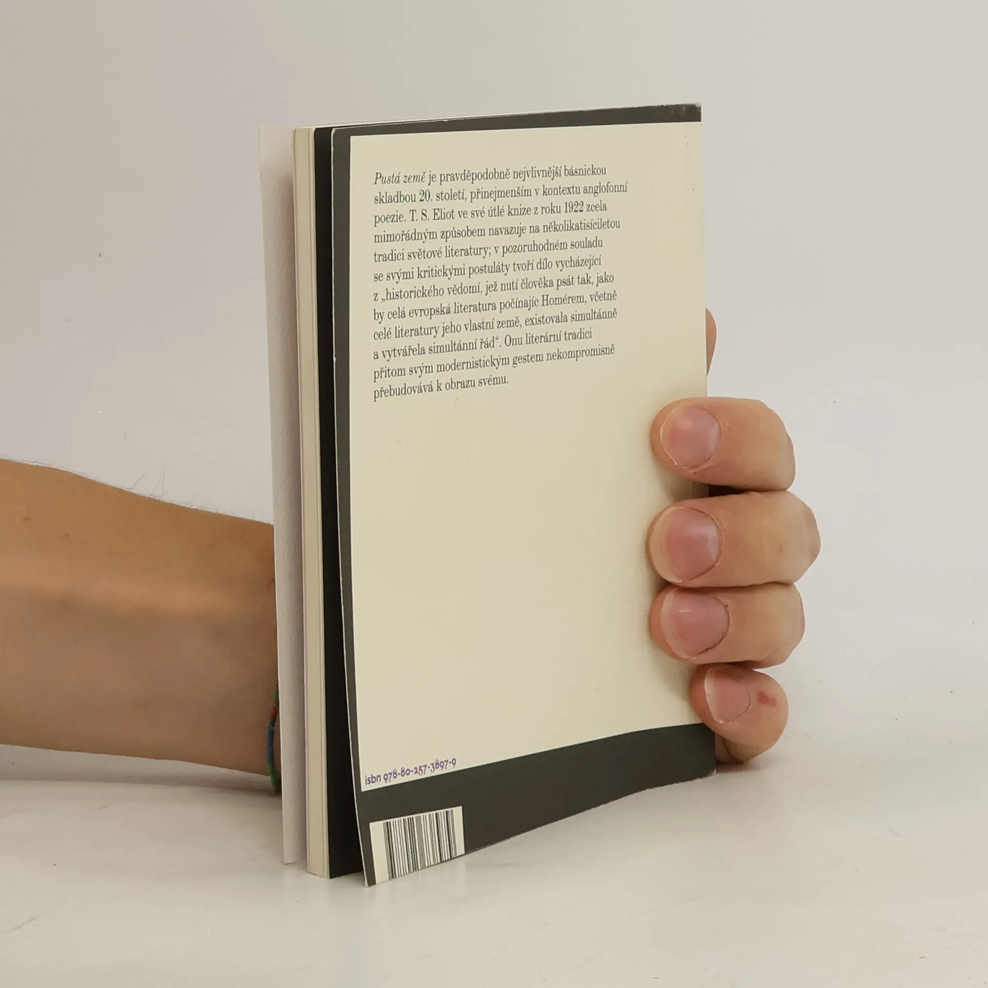 Nový překlad nejvlivnější angloamerické básně dvacátého století, který vychází ke stému výročí jejího prvního vydání. Pustá země je pravděpodobně nejvlivnější básnickou skladbou 20. století, přinejmenším v kontextu anglofonní poezie. T.S. Eliot ve své útlé knize z roku 1922 zcela mimořádným způsobem navazuje na několikatisíciletou tradici světové literatury; v pozoruhodném souladu se svými kritickými postuláty tvoří dílo vycházející z "historického vědomí, jež nutí člověka psát tak, jako by celá evropská literatura počínajíc Homérem, včetně celé literatury jeho vlastní země, existovala simultánně a vytvářela simultánní řád". Onu literární tradici přitom svým modernistickým gestem nekompromisně přebudovává k obrazu svému. Nakladatelská anotace.