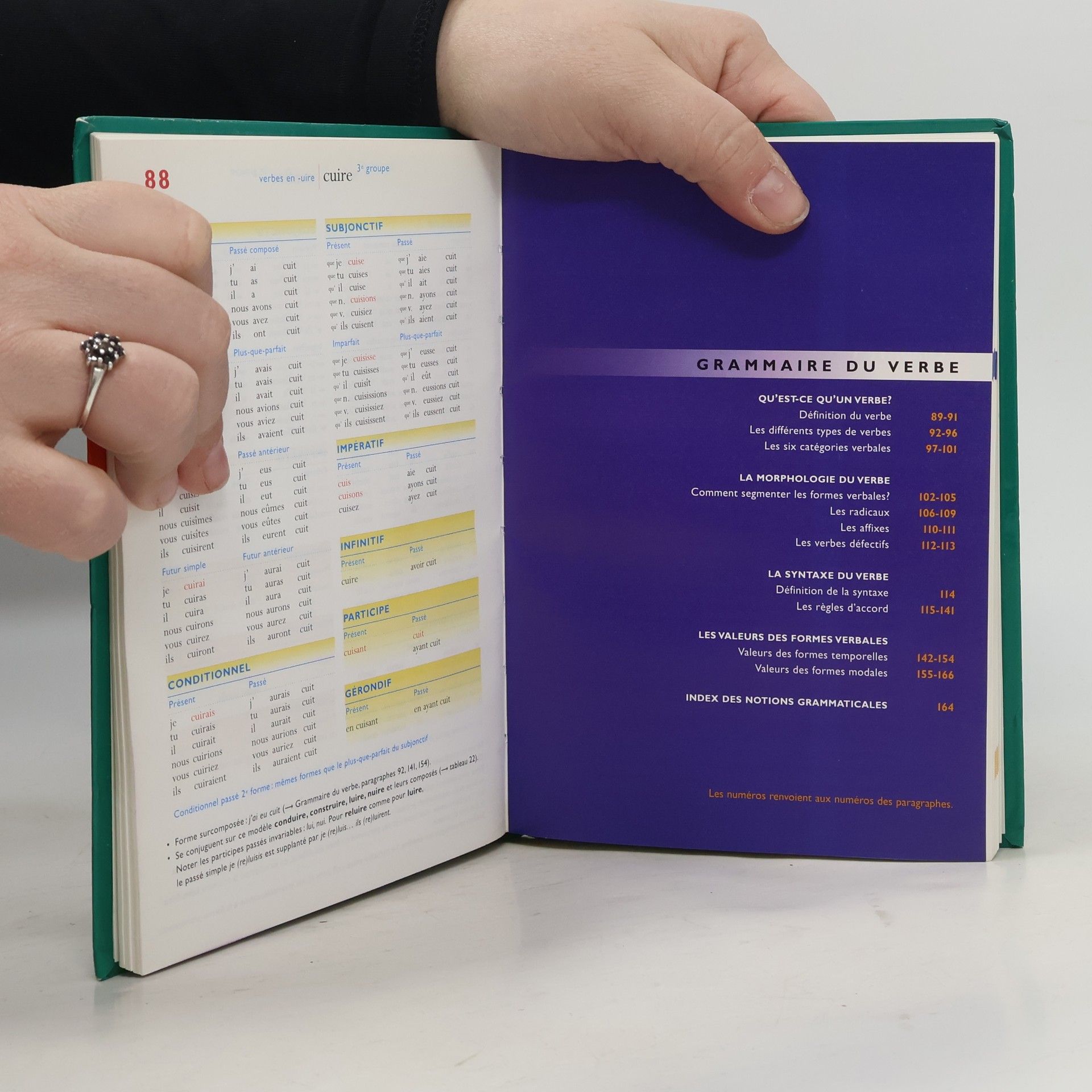 Plus question de vous fâcher avec les verbes lorsque vous êtes au beau milieu d'une lettre ou d'un rapport urgent : ce petit "dictionnaire" rouge de référence regroupe tous les verbes de la langue française (soit 12 000 verbes au dernier recensement), tous indexés et renvoyant aux 88 tableaux de verbes modèles accompagnés de leurs règles d'accord et d'emploi. Outil de référence qui a fait ses preuves, garant d'une conjugaison juste. Vous y trouverez également, dans une deuxième partie, les principales notions grammaticales directement liées à la conjugaison des verbes : morphologie, syntaxe et surtout, valeurs du verbe permettant de relier la forme au sens et ainsi mieux comprendre et maîtriser les aspects plus complexes de la conjugaison française. Cette édition intègre également les verbes nés des dernières décennies ainsi qu'un certain nombre de verbes employés couramment dans les pays francophones. Dans la même série : L'Orthographe pour tous et La Grammaire pour tous. --Elisabeth Brikke
