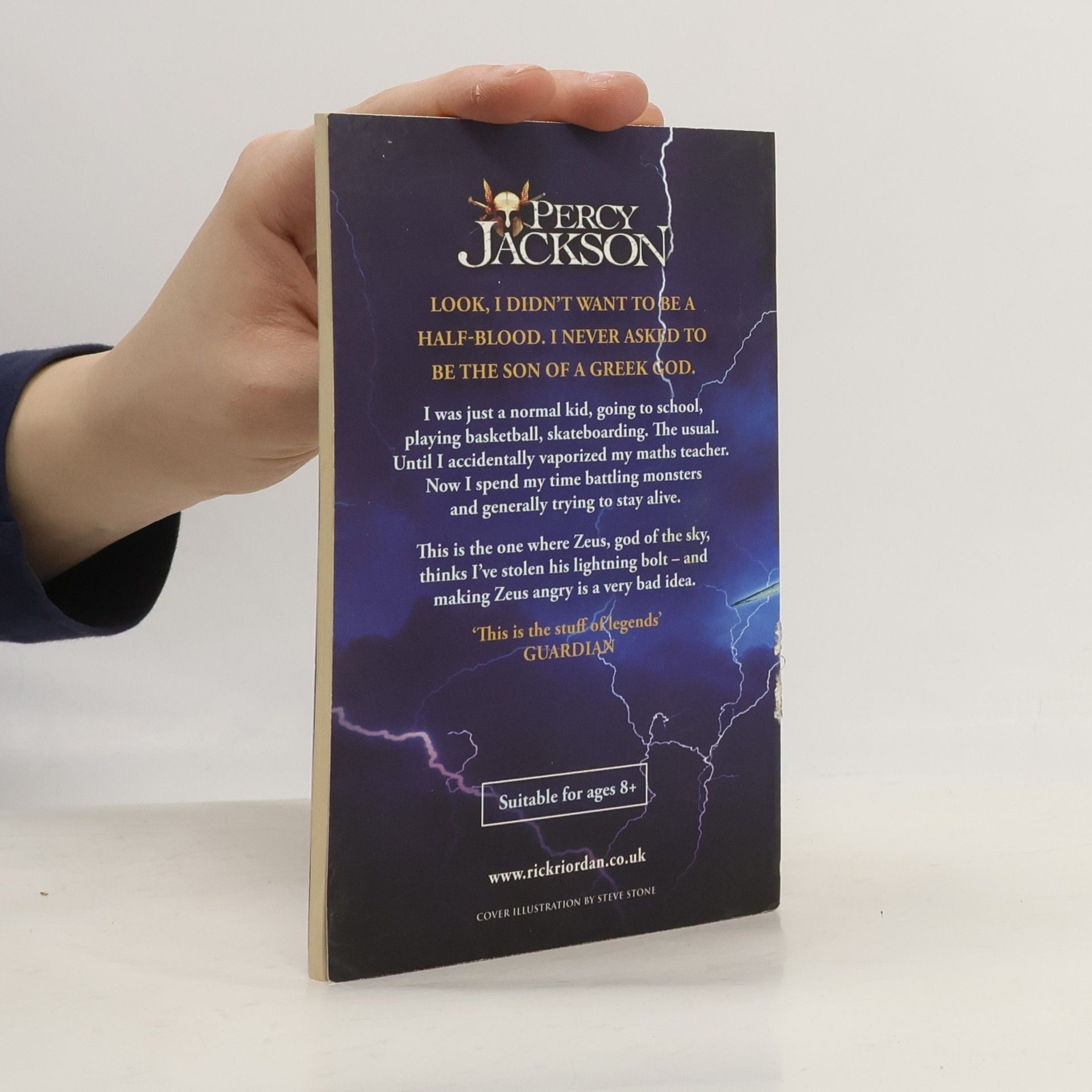 Percy Jackson and the Lightning Thief is the first bestselling book in Rick Riordan's phenomenally successful Percy Jackson series. Half boy. Half God. ALL Hero. Look, I didn't want to be a half-blood. I never asked to be the son of a Greek God. I was just a normal kid, going to school, playing basketball, skateboarding. The usual. Until I accidentally vaporized my maths teacher. Now I spend my time battling monsters and generally trying to stay alive. This is the one where Zeus, God of the Sky, thinks I've stolen his lightning bolt - and making Zeus angry is a very bad idea. ----- Rick Riordan has now sold an incredible 55 million copies of his books worldwide 'It's Buffy meets Artemis Fowl. Thumbs up' Sunday Times ----- Books by Rick Riordan: The Percy Jackson series: Percy Jackson and the Lightning Thief Percy Jackson and the Sea of Monsters Percy Jackson and the Titan's Curse Percy Jackson and the Battle of the Labyrinth Percy Jackson and the Last Olympian Percy Jackson: The Demigod Files The Heroes of Olympus series: The Lost Hero The Son Of Neptune The Mark of Athena The Heroes of Olympus: The Demigod Files The Kane Chronicles series: The Red Pyramid The Throne of Fire The Serpent's Shadow The Magnus Chase series: Magnus Chase and the Sword of Summer Magnus Chase and the Hammer of Thor Magnus Chase and the Ship of the Dead The Trials of Apollo series: The Dark Prophecy The Hidden Oracle The Burning Maze