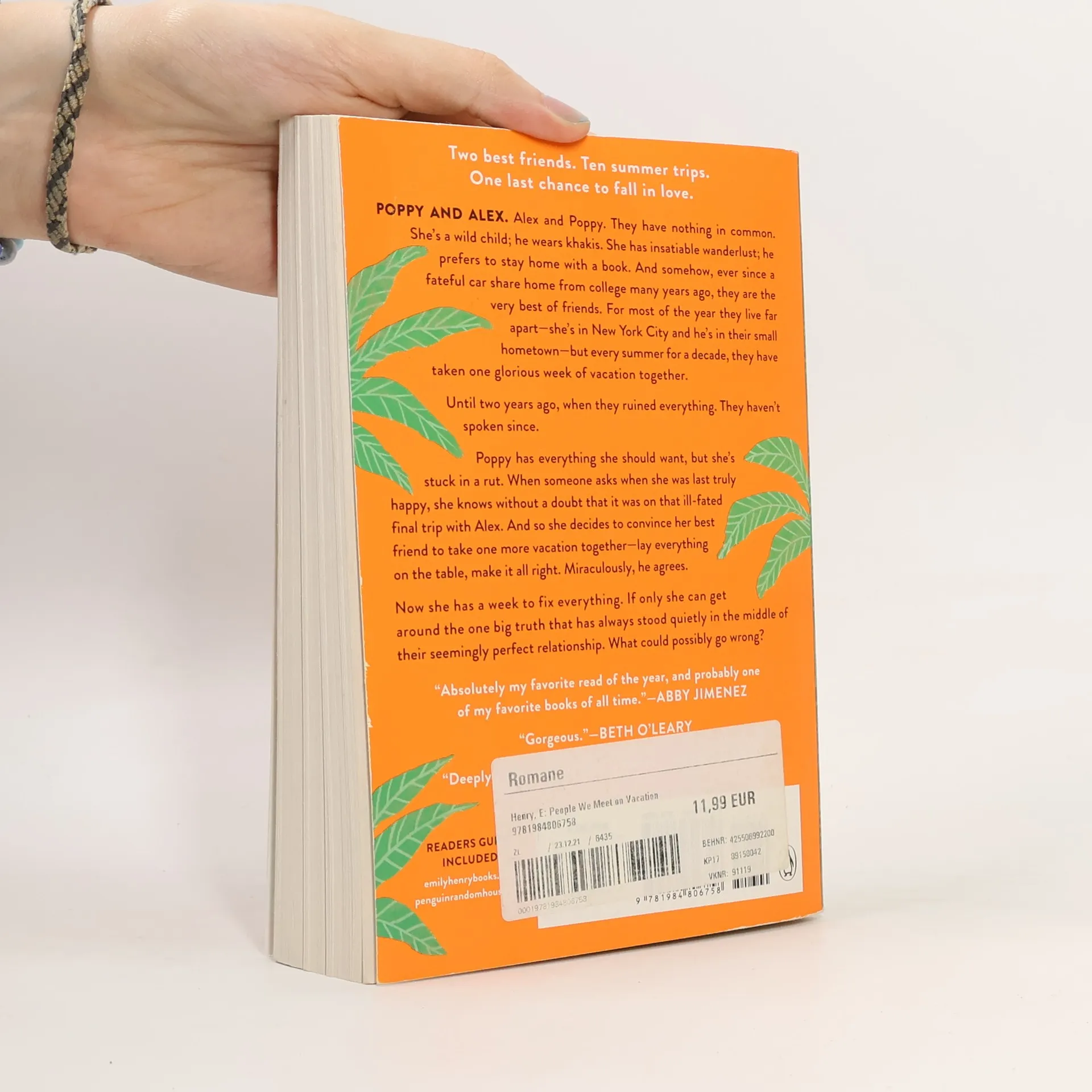 "When Poppy met Alex, there was no spark, no chemistry, and no reason to think they'd ever talk again. Alex is quiet, studious, and destined for a future in academia. Poppy is a wild child who only came to U of Chicago to escape small-town life. But after sharing a ride home for the summer, the two form a surprising friendship. After all, who better to confide in than someone you could never, ever date? Over the years, Alex and Poppy's lives take them in different directions, but every summer the two find their way back to each other for a magical week long vacation. Until one trip goes awry, and in the fallout, they lose touch. Now, two years later, Poppy's in a rut. Her dream job, her relationships, her life - none of it is making her happy. In fact, the last time she remembers feeling truly happy was on that final, ill-fated Summer Trip. The answer to all her problems is obvious: She needs one last vacation to win back her best friend. As a hilariously disastrous week unfolds and tensions rise, Poppy and Alex are forced to confront what drove them apart - and decide what they're willing to risk for the chance to be together."-- Provided by publisher