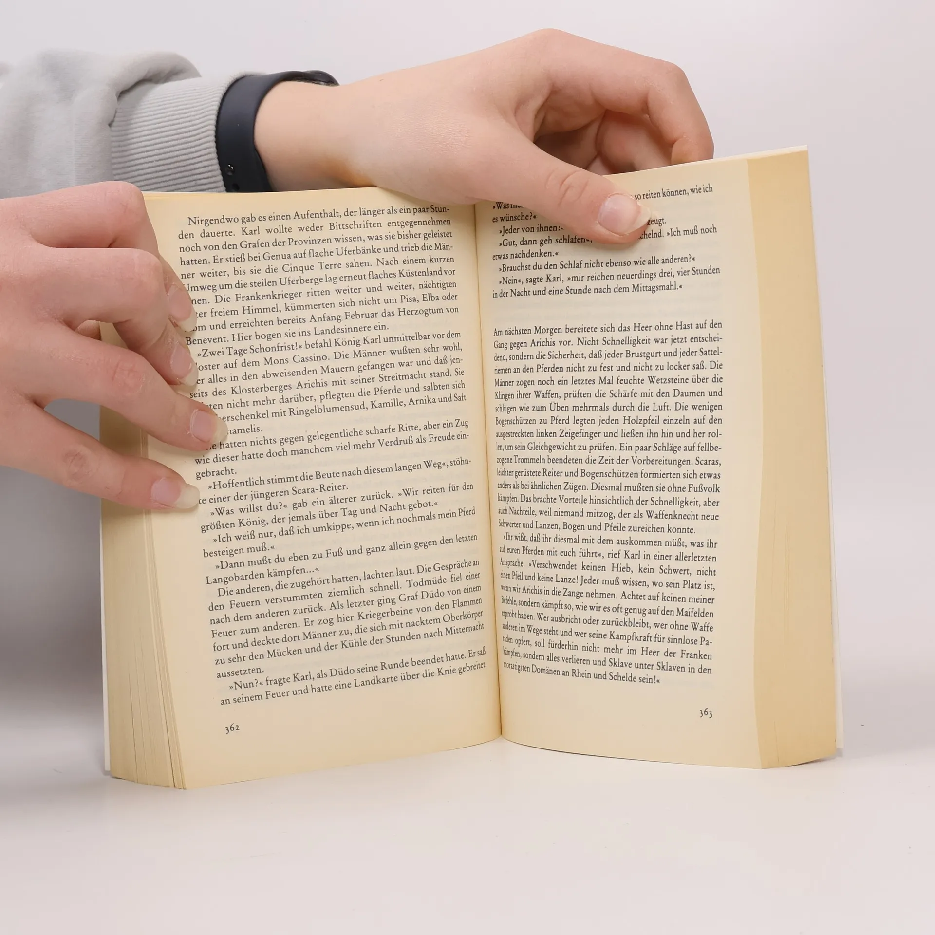 Auf dem Höhepunkt seiner Macht wird er im Petersdom vom Papst zum Kaiser gekrönt: Karl der Große (742–814), König der Franken und erster römisch-deutscher Kaiser. Er konnte nicht schreiben, aber versammelte die besten Gelehrten an seinem Hof. Er war rastlos in seinem riesigen Reich unterwegs und schlug als grausamer, gefürchteter Kriegsherr Sachsen und Sarazenen. Er liebte seine Ehe- und Nebenfrauen ebenso wie seine zahlreichen Söhne und Töchter. Welche Kraft, welcher Wille eines Kerls – denn das bedeutet der Name Karl, – der die politische Landkarte Europas und die abendländische Kultur wesentlich geprägt hat.