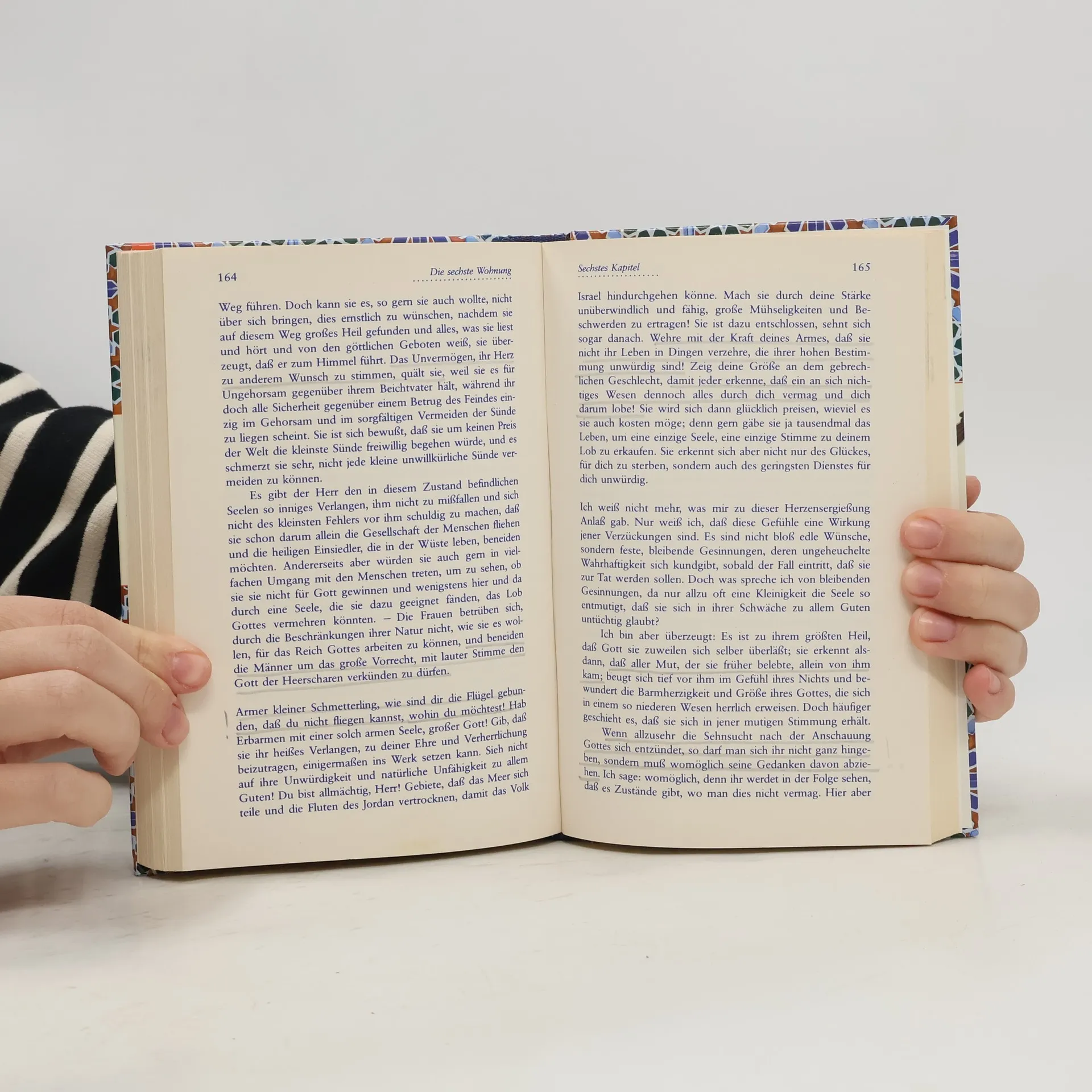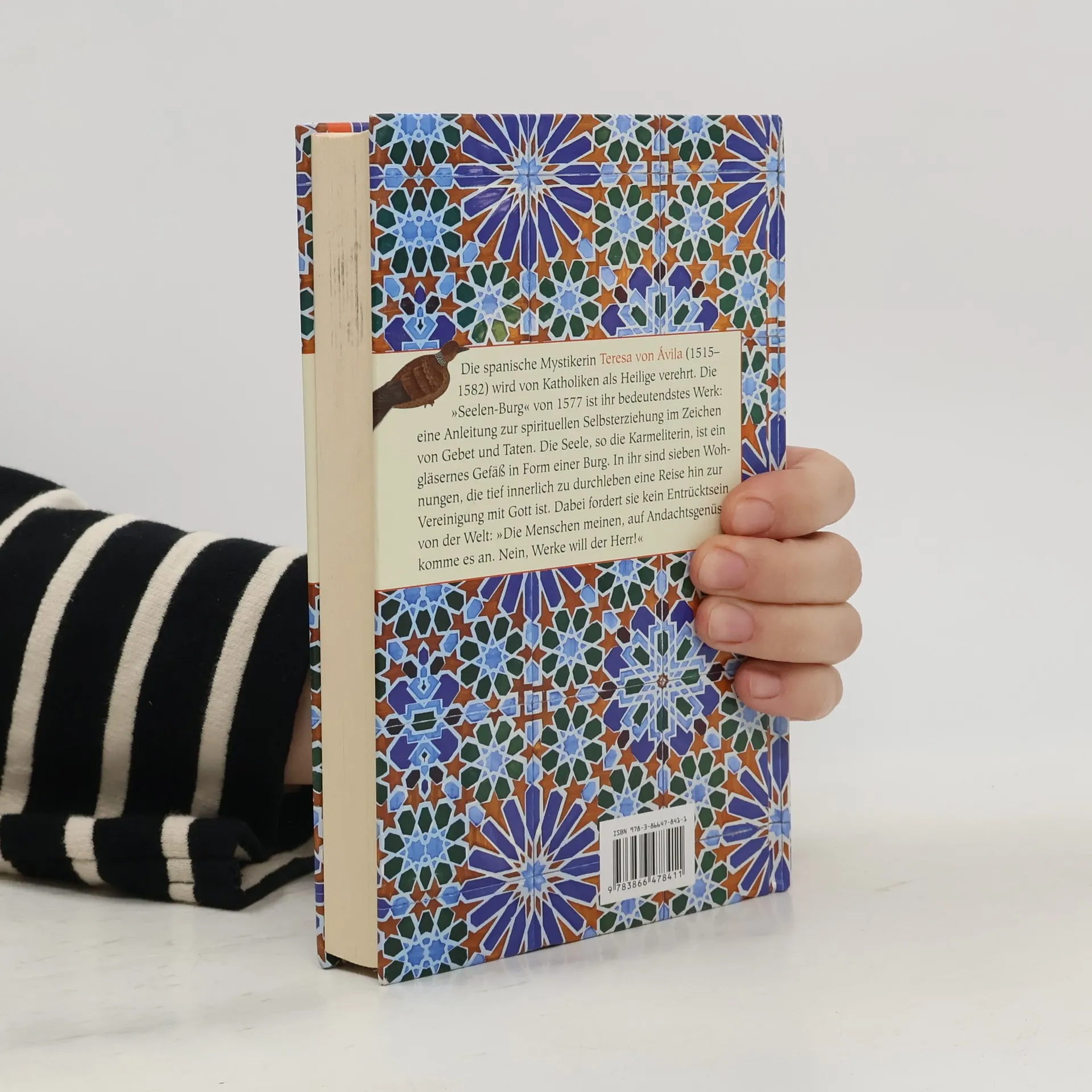 Die spanische Mystikerin Teresa von Ávila (1515–1582) wird von Katholiken als Kirchenlehrerin und Heilige verehrt. Die 'Seelen-Burg' von 1577 ist ihr bedeutendstes Werk: eine Anleitung zur spirituellen Selbsterziehung im Zeichen von Gebet und Taten. Die Seele, so die Karmeliterin, ist ein gläsernes Gefäß in Form einer Burg. In ihr sind sieben Wohnungen, die tief innerlich zu durchleben eine Reise hin zur Vereinigung mit Gott ist. Dabei bedeutet ihre Mystik keineswegs ein Entrücktsein von der Welt: 'Die Menschen meinen, auf Andachtsgenüsse komme es an. Nein, Werke will der Herr!'