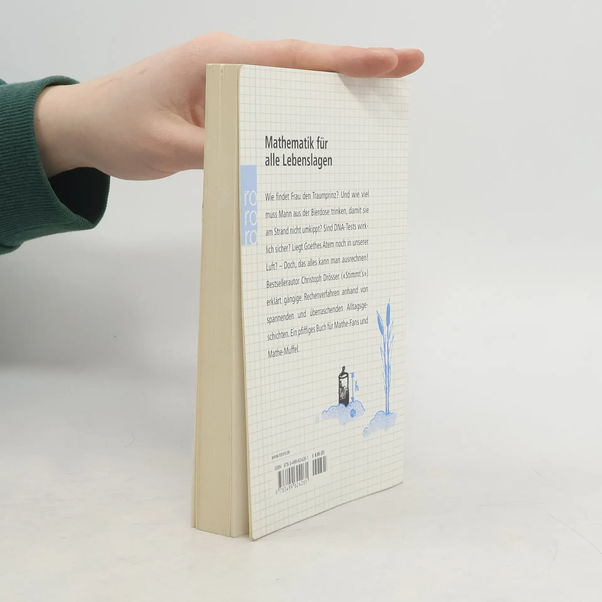 Wie findet Mann den Traumprinz? Und wie viel muss Mann aus der Bierdose trinken, damit sie am Strand nicht umkippt? Sind DNA-Tests wirklich sicher? Liegt Goethes Atem noch in unserer Luft? - Doch, das alles kann man ausrechnen! Bestsellerautor Christoph Drösser ("Stimmt's") erklärt gängige Rechenverfahren anhand von spannenden und überraschenden Alltagsgeschichten. Ein pfiffiges Buch für Mathe-Fans und Mathe-Muffel.