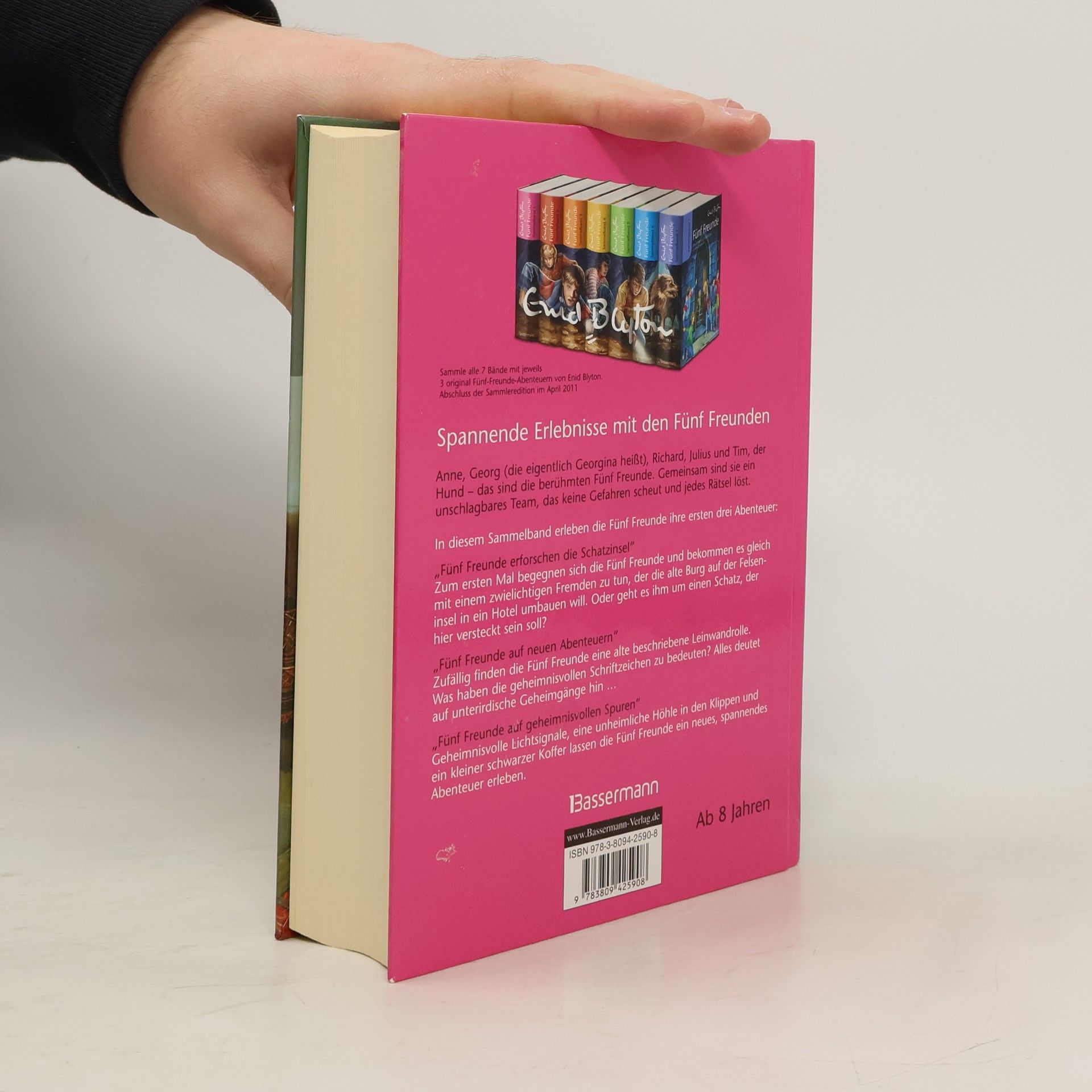 Spannende Erlebnisse der fünf Freunde – wie alles begann Seit über 50 Jahren fiebern Kinder mit, wenn die Fünf Freunde Anne, Georg (die eigentlich Georgina heißt), Richard, Julius und der Hund Tim in alten Gemäuern, dunklen Höhlen oder unterirdischen Gängen verborgene Schätze aufspüren oder sich gegen finstere Gestalten behaupten. Die ersten drei aufregenden Abenteuer der Fünf Freunde hält dieser Sammelband bereit: - "Fünf Freunde erforschen die Schatzinsel"Zum ersten Mal begegnen sich die Fünf Freunde und bekommen es gleich mit einem zwielichtigen Fremden zu tun, der die alte Burg auf der Felseninsel in ein Hotel umbauen will. Oder geht es ihm um einen Schatz, der hier versteckt sein soll? - "Fünf Freunde auf neuen Abenteuern"Zufällig finden die Fünf Freunde eine alte beschriebene Leinwandrolle. Was haben die geheimnisvollen Schriftzeichen zu bedeuten? Alles deutet auf unterirdische Geheimgänge hin ... - "Fünf Freunde auf geheimnisvollen Spuren"Geheimnisvolle Lichtsignale, eine unheimliche Höhle in den Klippen und ein kleiner schwarzer Koffer lassen die Fünf Freunde ein neues, spannendes Abenteuer erleben.