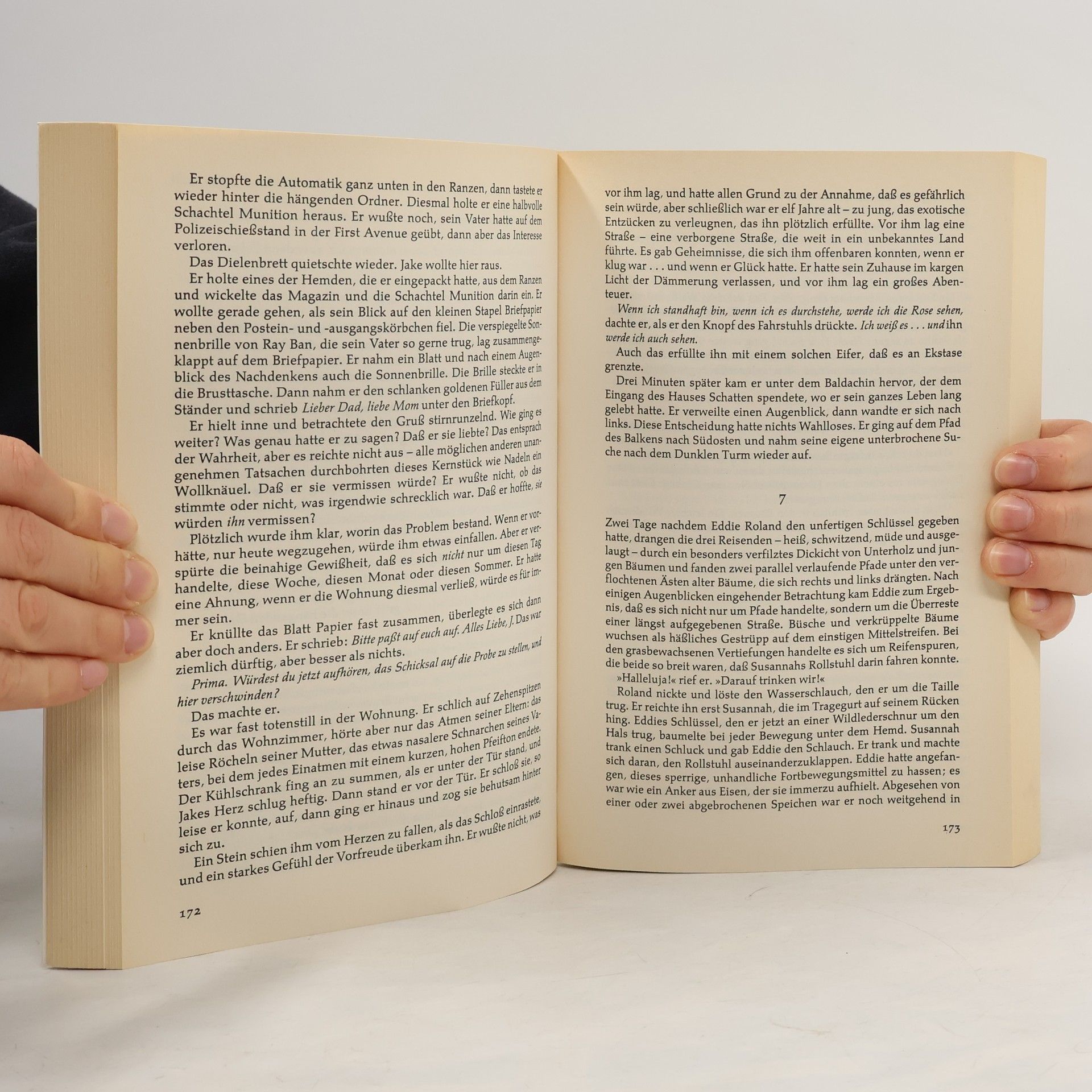 Die sterbende Welt, die Roland auf der Suche nach dem "Dunklen Turm" durchquert, nimmt immer groteskere Formen und seltsamere Gestalten an. Am Rande des Wahnsinns träumt Roland von dem Schlüssel, der aus dem Nichts des wüsten Landes auftaucht, um ihm die Geheimnisse des "Dunklen Turms" zu offenbaren.