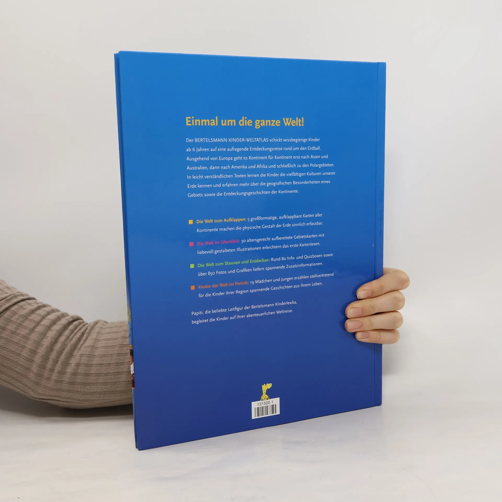 Der Bertelsmann Kinder-Weltatlas beantwortet Kinderfragen zur Geografie altersgemäß und zuverlässig. Anschauliche Karten und Texte beleben das Interesse, verschaffen Orientierung und vermitteln Fakten, ohne dabei den kindlichen Blick auf die Welt aus den Augen zu verlieren. 6 aufklappbare Karten machen die Welt in ihren Ausmaßen sinnlich erfahrbar. 30 anschauliche Karten mit allen Ländern der Welt geben Orientierung