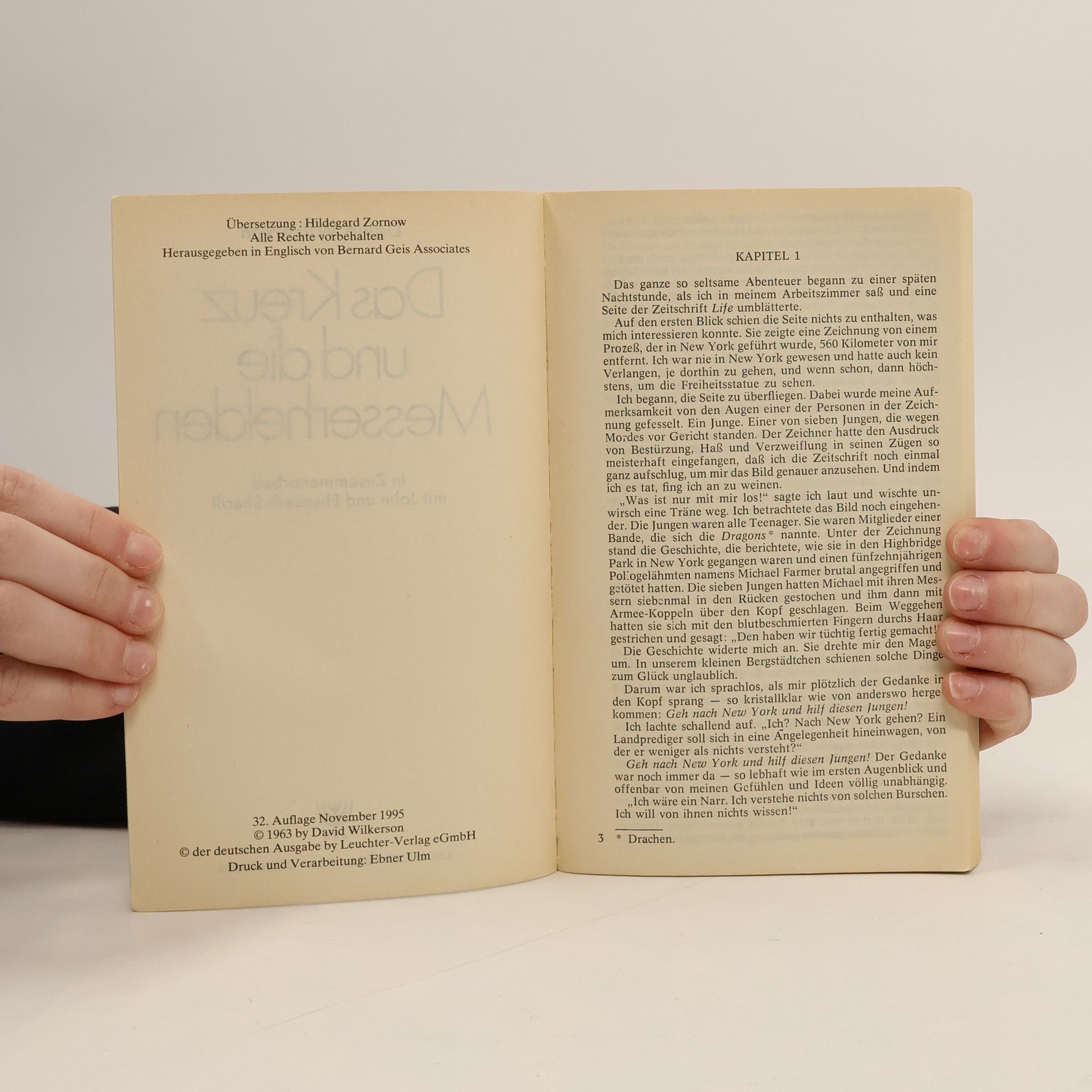 Bandenkriege, Messerstechereien, Drogen - mitten in diese Szene Brooklyns tritt ein Mann, erzählt leidenschaftlich und unkonventionell von der Liebe Gottes, riskiert dabei sein Leben und löst eine Erweckung unter den jugendlichen Bandenmitgliedern aus. David Wilkerson berichtet lebendig und packend von den dramatischen Erlebnissen aus der Zeit als Straßenprediger. Die weltweite Aufl age dieses Buches liegt bei 30 Millionen Exemplaren in 40 Sprachen. Allein in Deutschland fast 600.000 Stück in 35 Auflagen. überarbeitete und leicht gekürzte Ausgabe