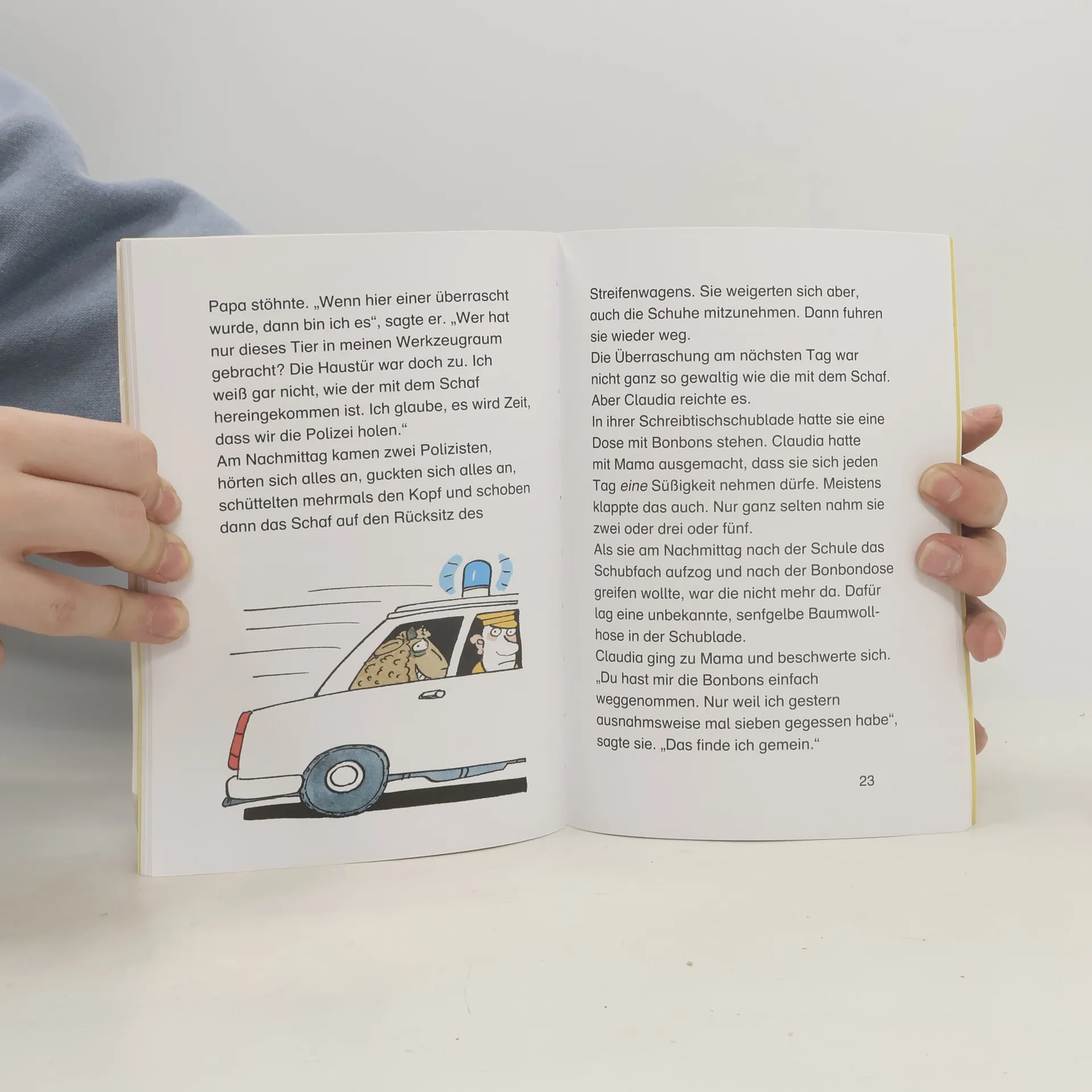 Angefangen hat alles damit, dass Claudia im Garten ein Ei fand. Das war himmelblau und ungefähr so groß wie ein Autoreifen. Klar, dass sie es nicht einfach so liegen lassen konnte. Vielleicht war ja ein Saurier drin oder ein Krokodil. Wenn Claudia geahnt hätte, dass in dem Ei ein Buchstaben-Fresser war, hätte sie es bestimmt nicht angerührt.