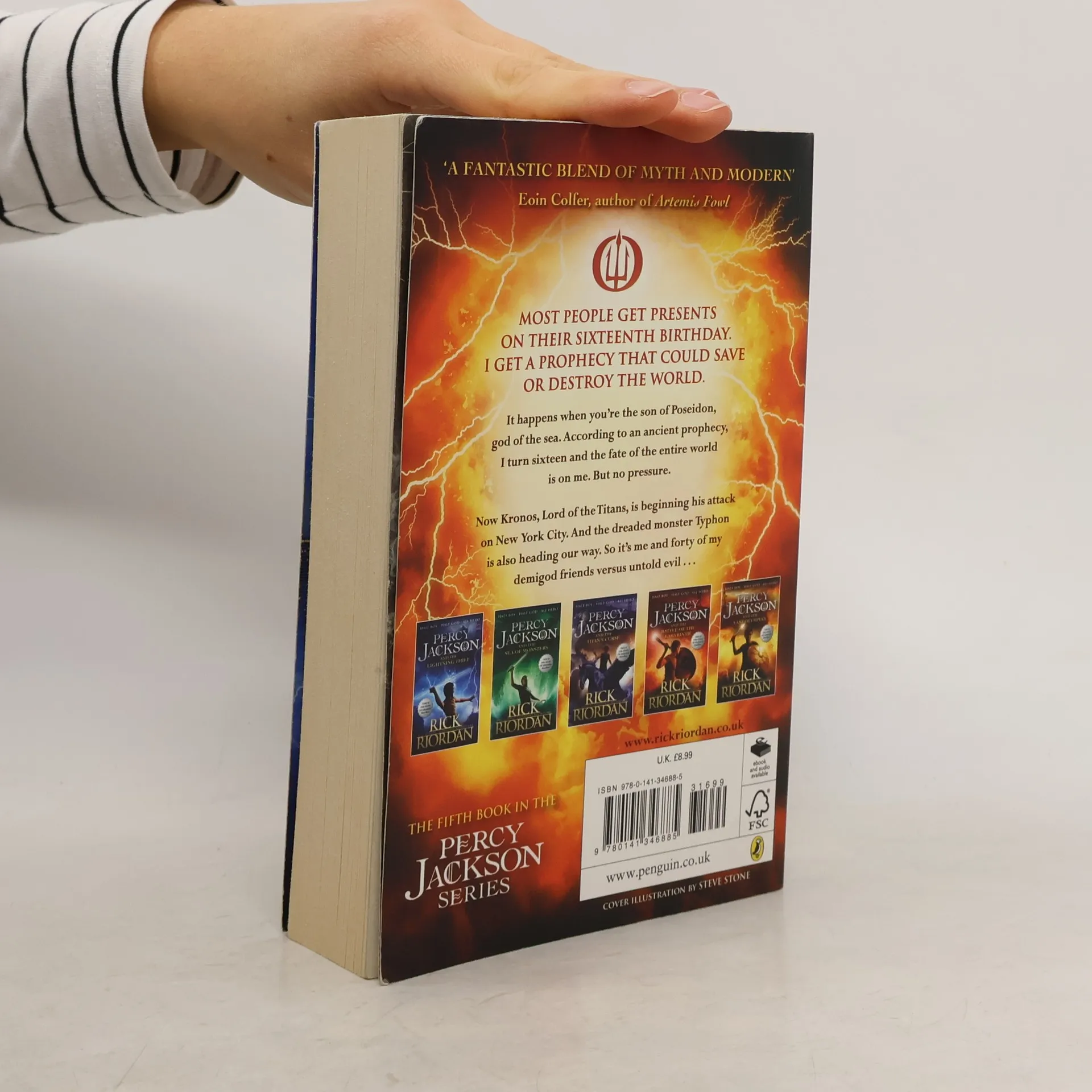 Most people get presents on their sixteenth birthday. I get a prophecy that could save or destroy the world. It happens when you're the son of Poseidon, God of the Sea. According to an ancient prophecy, I turn sixteen and the fate of the entire world is on me. But no pressure. Now Kronos, Lord of the Titans, is beginning his attack on New York City. And the dreaded monster Typhon is also heading our way. So it's me and forty of my demigod friends versus untold evil . . . 'Rick Riordan is the US Rowling . . . huge, huge fun.' Amanda Craig, amazon.com Rick Riordan is the Mythmaster. The Greek Gods are alive and kicking - go to www.rickriordanmythmaster.co.uk and see for yourself.