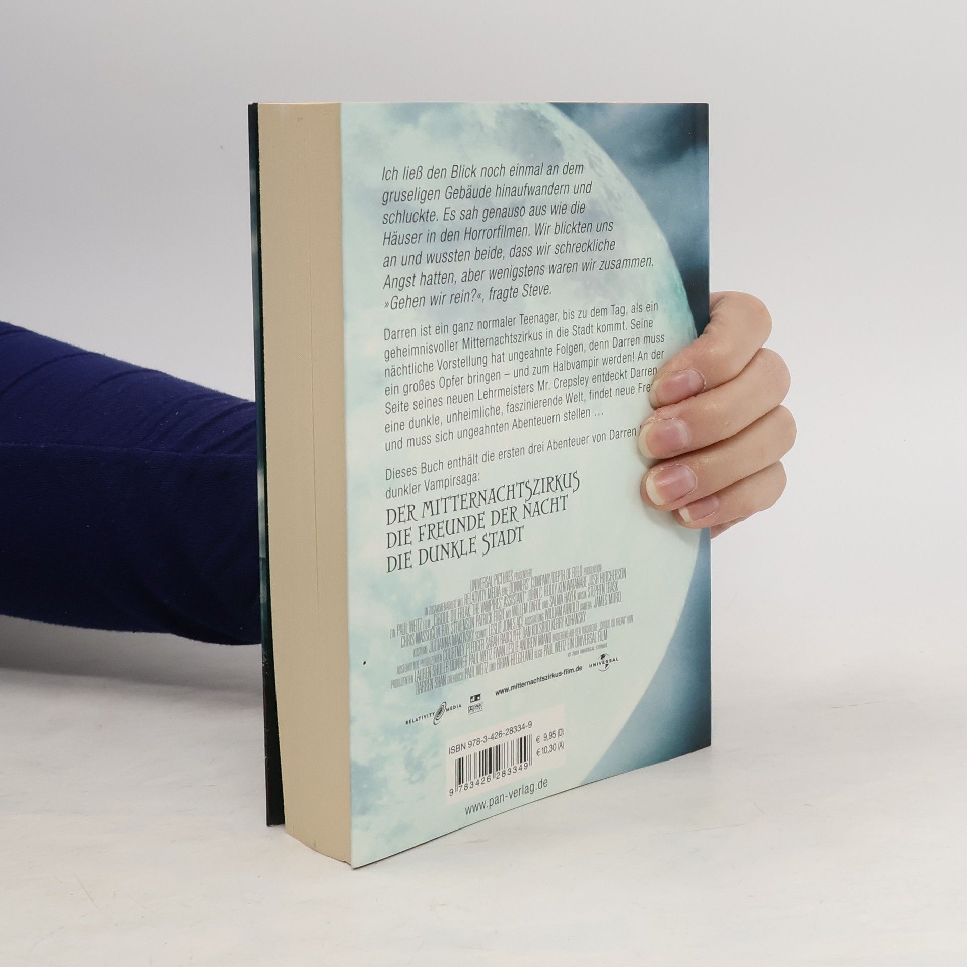 Ich ließ den Blick noch einmal an dem gruseligen Gebäude hinaufwandern und schluckte. Es sah genauso aus wie die Häuser in den Horrorfilmen. Wir blickten uns an und wussten beide, dass wir schreckliche Angst hatten, aber wenigstens waren wir zusammen. »Gehen wir rein?«, fragte Steve. Darren ist ein ganz normaler Teenager, bis zu dem Tag, als ein geheimnisvoller Mitternachtszirkus in die Stadt kommt. Seine nächtliche Vorstellung hat ungeahnte Folgen, denn Darren muss ein großes Opfer bringen – und zum Halbvampir werden! An der Seite seines neuen Lehrmeisters Mr. Crepsley entdeckt Darren eine dunkle, unheimliche, faszinierende Welt, findet neue Freunde und muss sich ungeahnten Abenteuern stellen … Dieses Buch enthält die ersten drei Abenteuer von Darren Shans dunkler Vampirsaga: DER MITTERNACHTSZIRKUS DIE FREUNDE DER NACHT DIE DUNKLE STADT