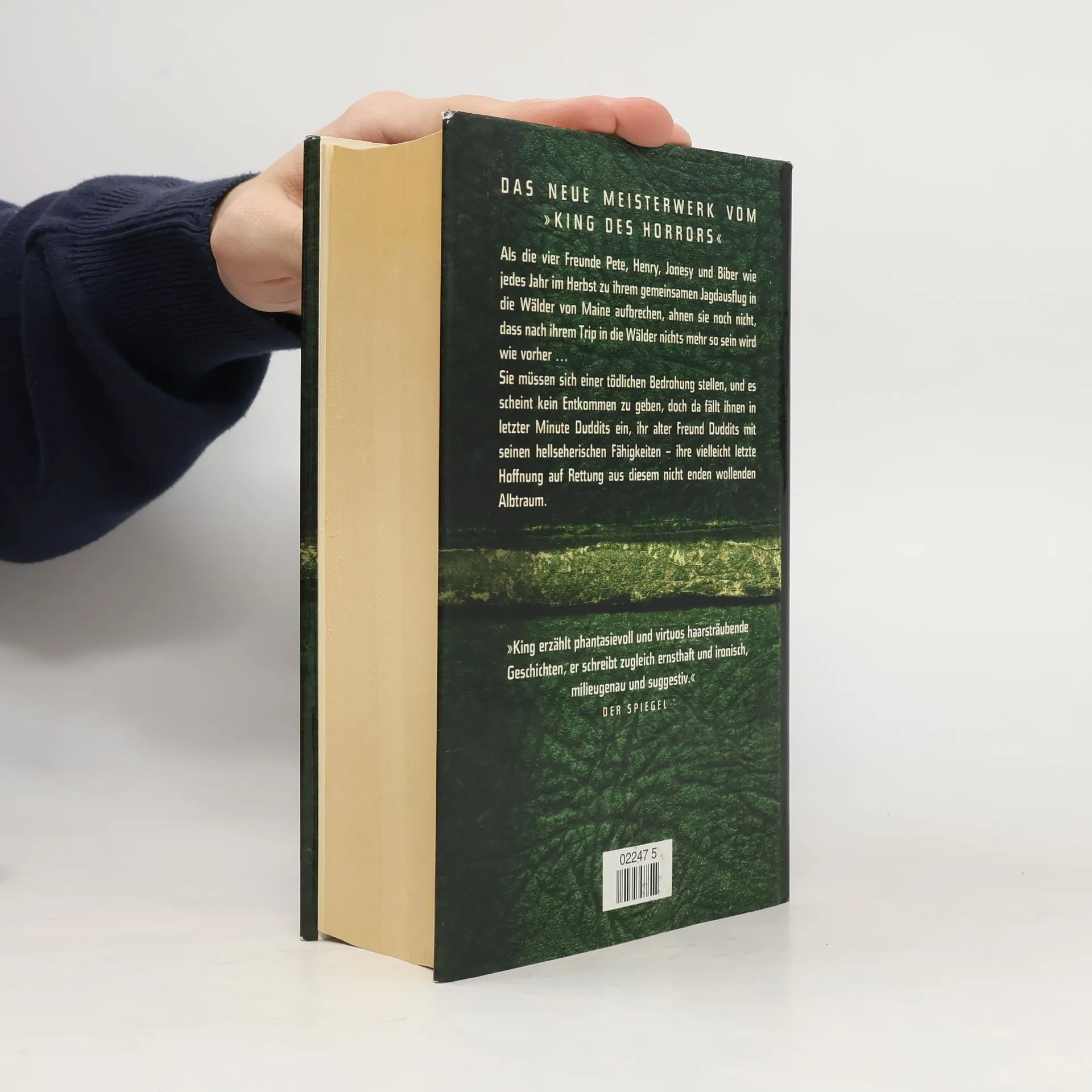 Seit Jahren wird behauptet, Stephen King habe sich mit Es selbst übertroffen und kein ähnliches Werk mehr geschaffen. In seinem neuen Roman wird der Mythos um das Städtchen Derry erneut aufgegriffen, was den Vergleich nahelegt: Kann Duddits mit Es konkurrieren? Henry, Jonesy, Biber und Pete sind beste Freunde und haben einen besonderen fünften Freund: Duddits, einen Jungen mit Down-Syndrom, den sie einst vor älteren Mitschülern beschützten und seitdem viel Zeit mit ihm verbringen. Trotz seines niedrigen IQs ist Duddits witzig und liebenswert und besitzt eine telepathische Begabung, die auch auf die anderen Freunde übergreift und ihre enge Verbindung stärkt – auch wenn sie sich dessen kaum bewusst sind. 25 Jahre später haben sich ihre Lebenswege getrennt, doch jeden November gehen sie in den Wäldern von Maine gemeinsam auf die Jagd. Als sie in ihrer Jagdhütte eingeschneit werden, ignorieren sie die Radiomeldungen über seltsame Lichter am Himmel, bis ein Hubschrauber die Gegend zum Sperrgebiet erklärt. Von einer geheimnisvollen Epidemie ist die Rede, und plötzlich ertönen Schüsse und eine Explosion erschüttert den Wald. Für die Freunde beginnt ein Albtraum, der sie in die Vergangenheit führt. Kings Erzählstil ist menschlich und berührend, während die inneren Monologe, sogar für King, vulgär sind. Diese Mischung verleiht der Geschichte eine Durchschlagskraft, die in seinen früheren Romanen gefehlt hat.