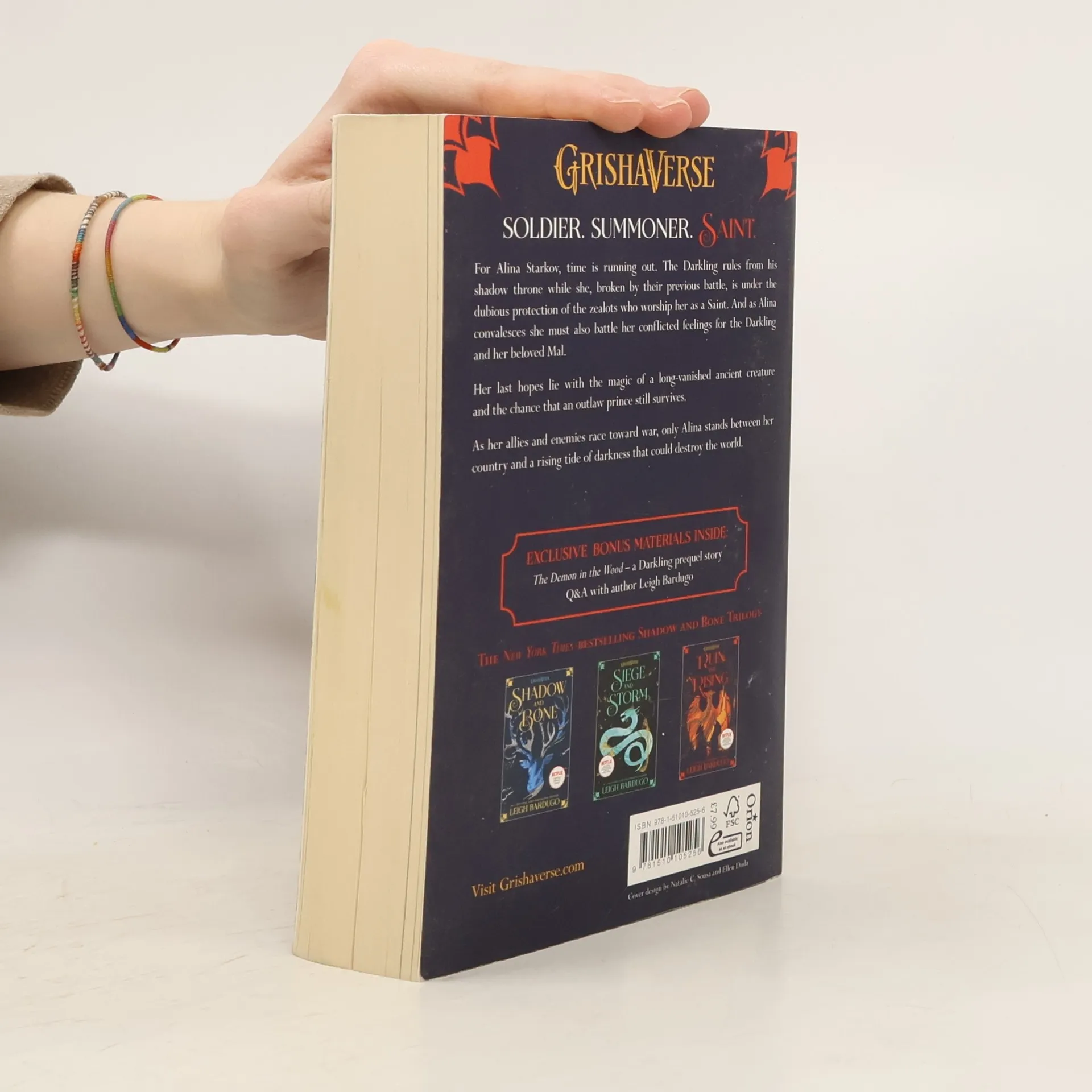 Soldier. Summoner. Saint. The nation's fate rests with a broken Sun Summoner, a disgraced tracker, and the shattered remnants of a once-great magical army. The Darkling rules from his shadow throne while a weakened Alina Starkov recovers from their battle under the dubious protection of the zealots who worship her as a Saint. Now her hopes lie with the magic of a long-vanished ancient creature and the chance that an outlaw prince still survives. As her allies and enemies race toward war, only Alina stands between her country and a rising tide of darkness that could destroy the world. To win this fight, she must seize a legend's power but claiming the firebird may be her ruin