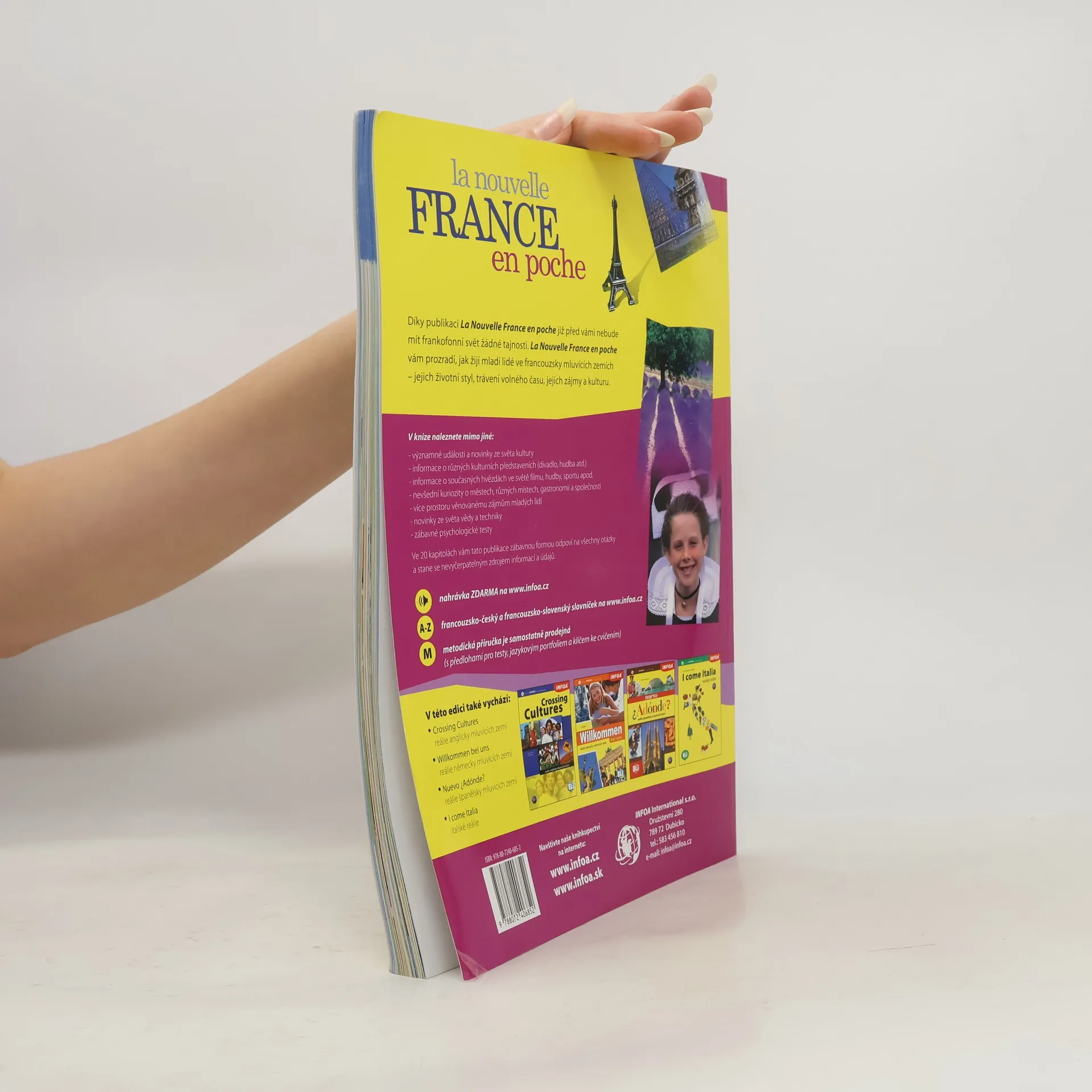 Díky publikaci La Nouvelle France en poche již před vámi nebude mít frankofonní svět žádné tajnosti. La Nouvelle France en poche vám prozradí, jak žijí mladí lidé ve francouzsky mluvících zemích – jejich životní styl, trávení volného času, jejich zájmy a kulturu. V knize naleznete mimo jiné: - významné události a novinky ze světa kultury, informace o různých kulturních představeních (divadlo, hudba atd.), informace o současných hvězdách ve světě filmu, hudby, sportu apod., nevšední kuriozity o městech, různých místech, gastronomii a společnosti, více prostoru věnovanému zájmům mladých lidí, novinky ze světa vědy a techniky, zábavné psychologické testy. Ve 20 kapitolách vám tato publikace zábavnou formou odpoví na všechny otázky a stane se nevyčerpatelným zdrojem informací a údajů.